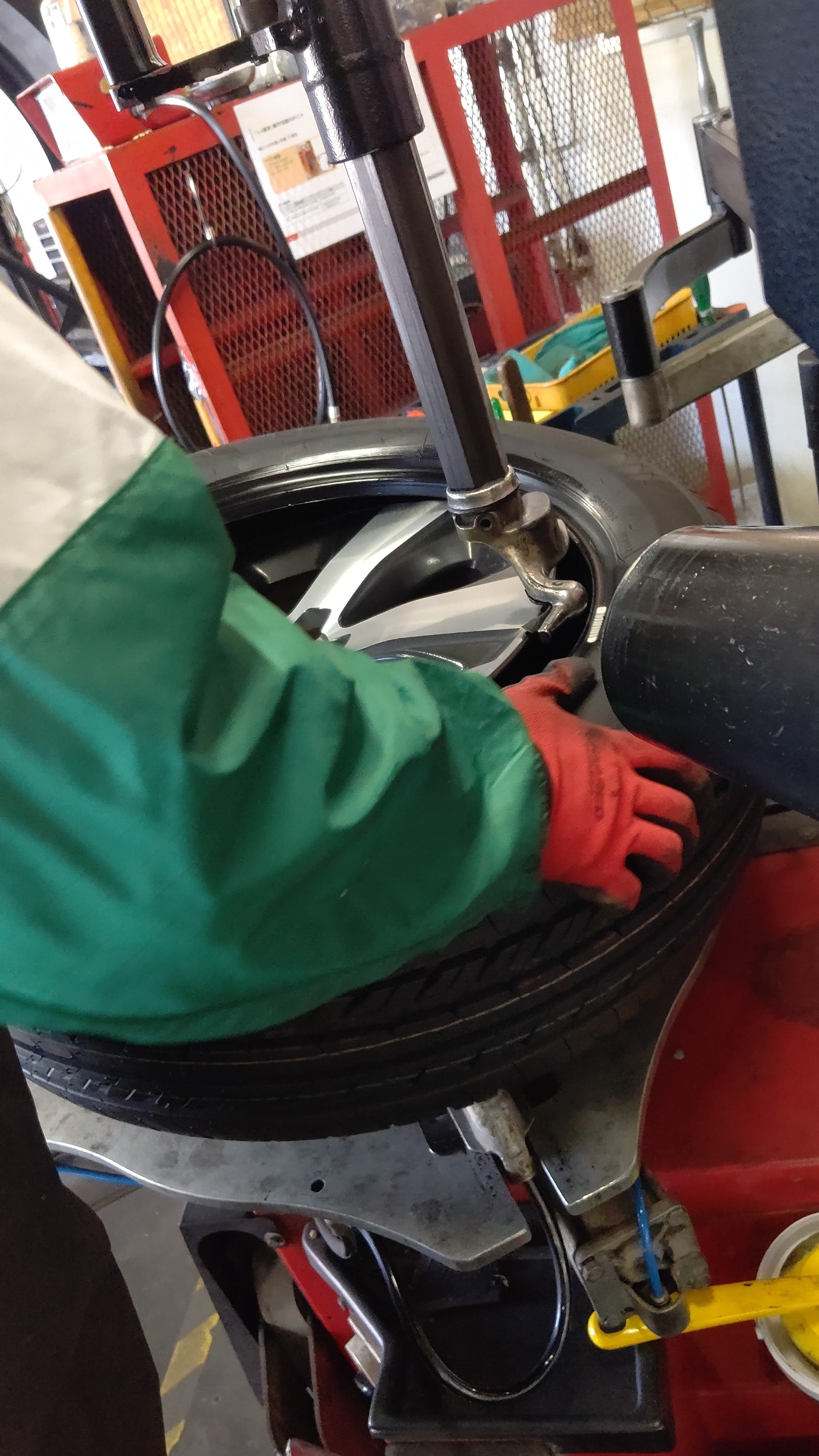 今までのタイヤを取り外して新しいタイヤを組み付けしていきます。