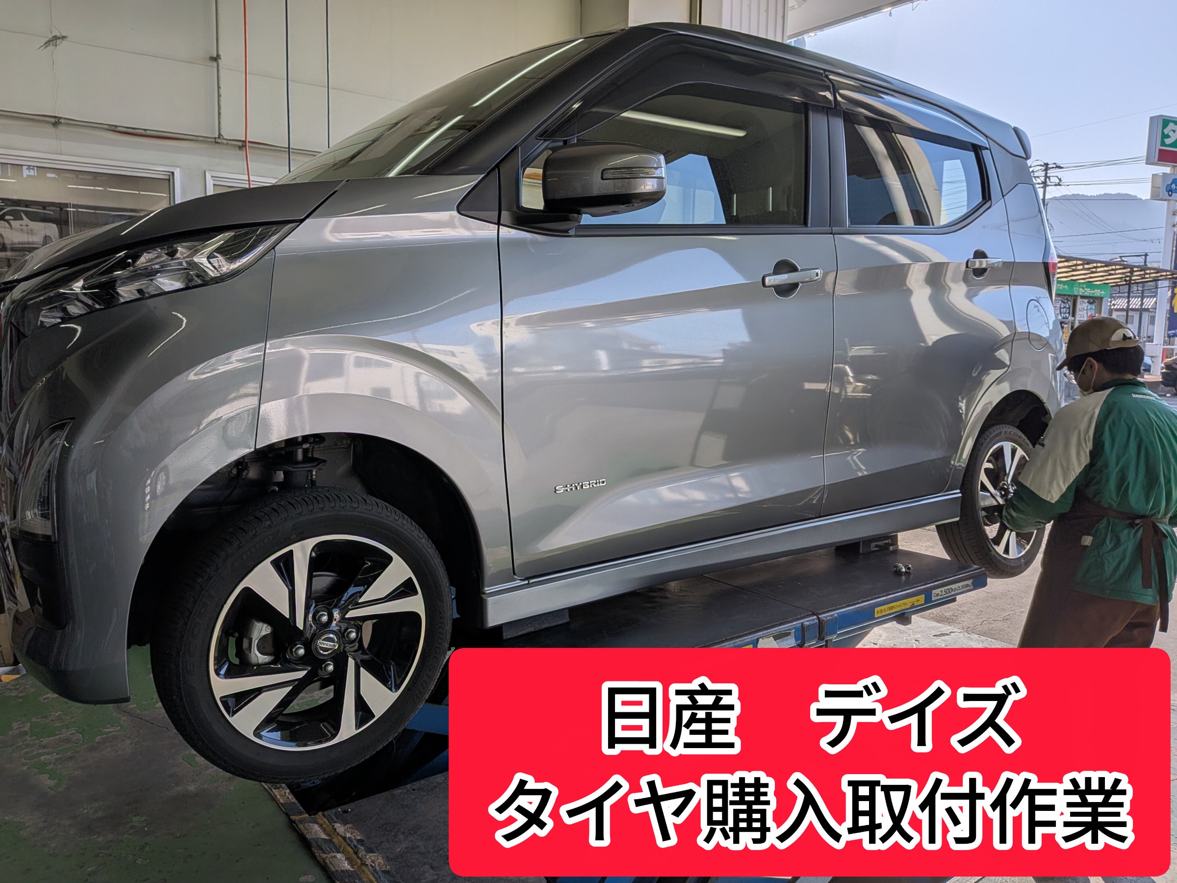 タイヤ館岩国で、日産 デイズのタイヤ購入取付作業をさせていただきました。