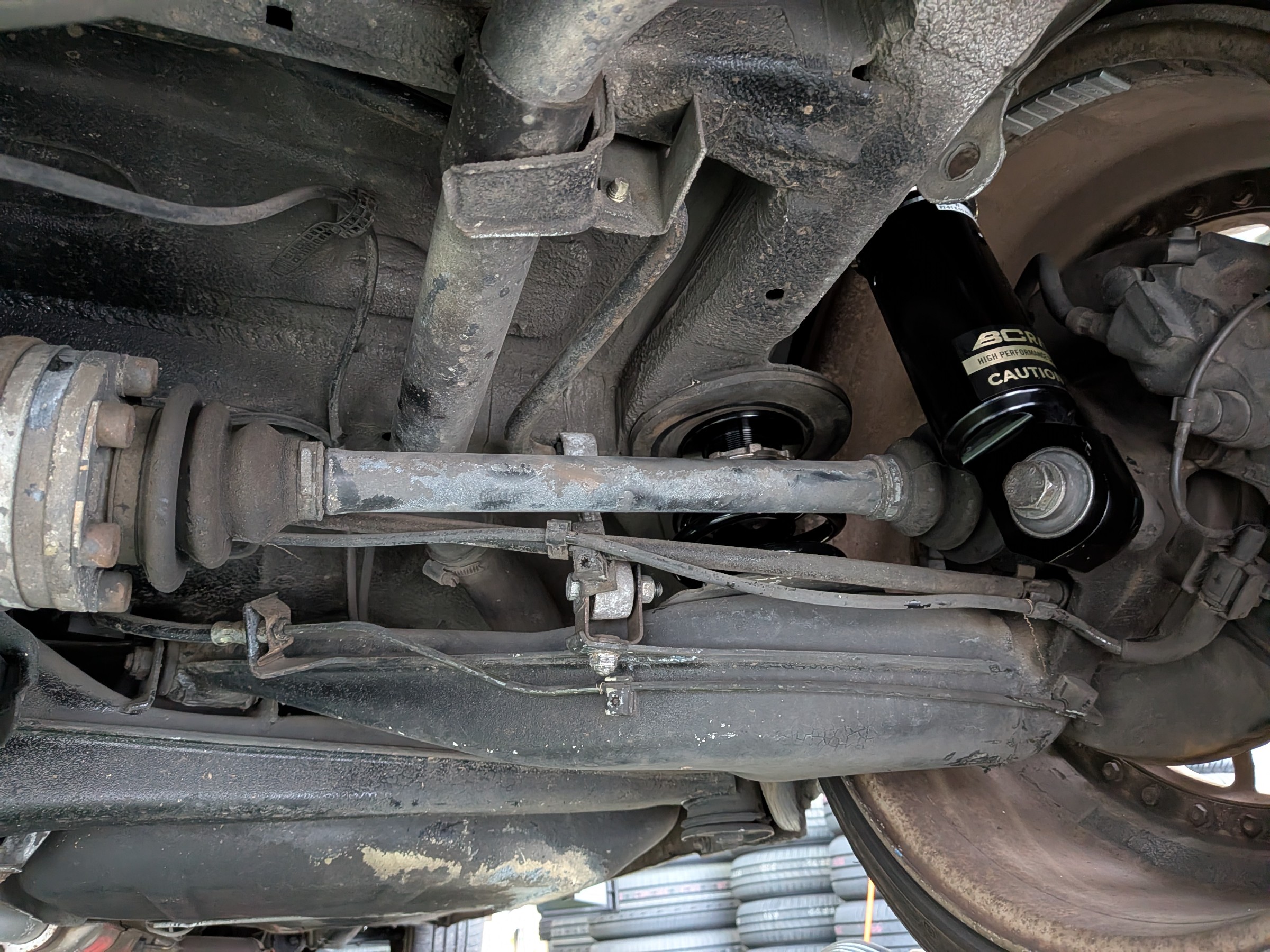 お客様ご自身でフロントトーロッドを交換していたのでアライメント調整が必要になってました。