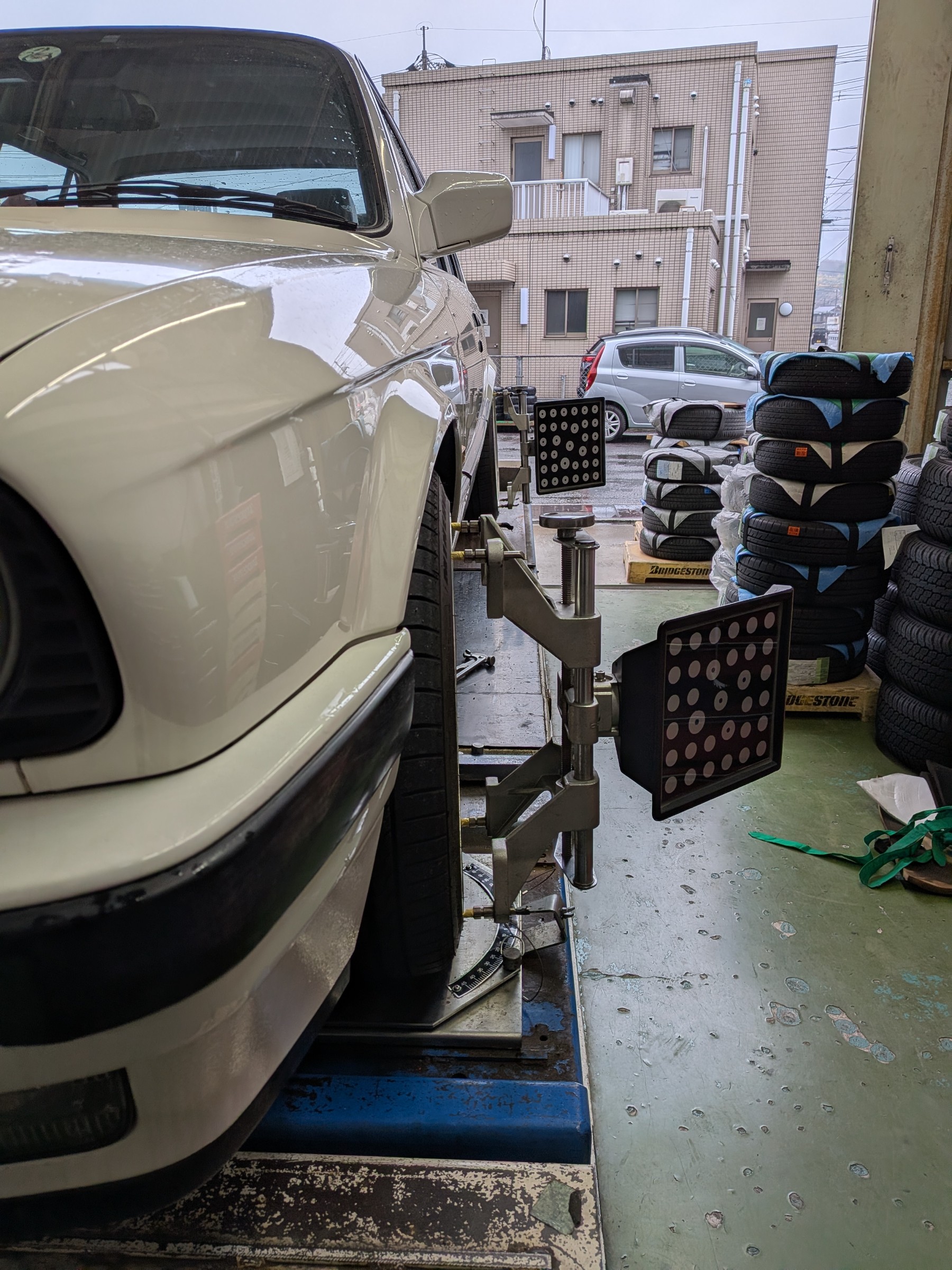 タイヤ館岩国で、BMW B320I E30のアライメント測定調整作業をさせていただきました。