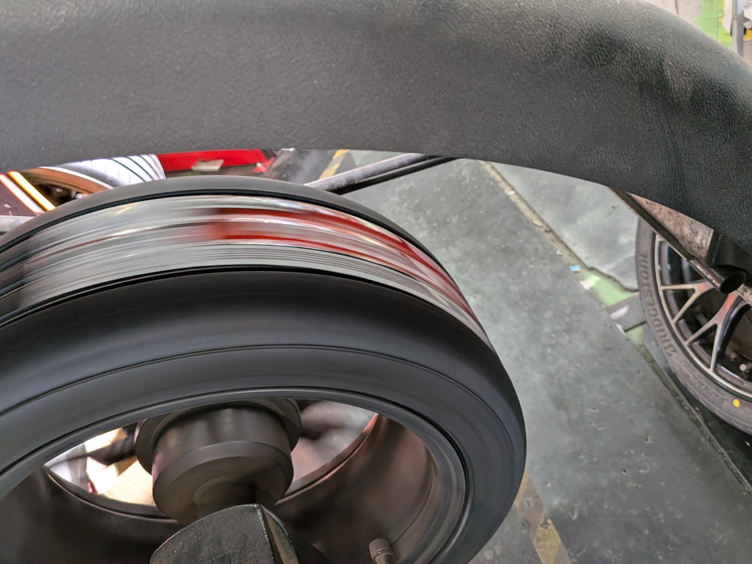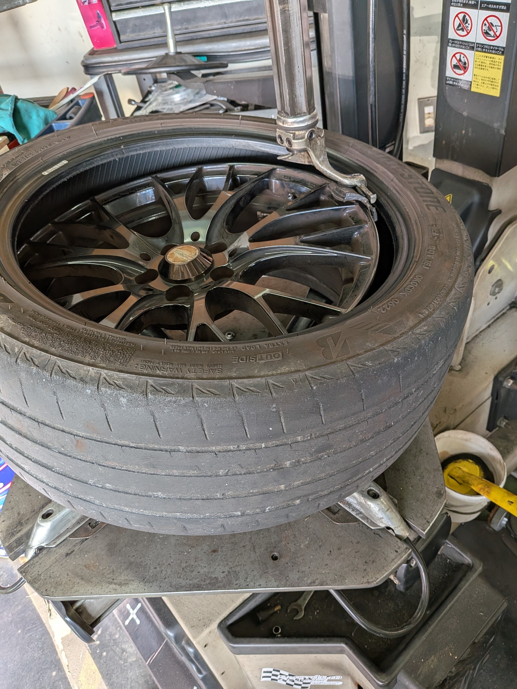 車体からタイヤホイールを外して今までのタイヤを外していきます。