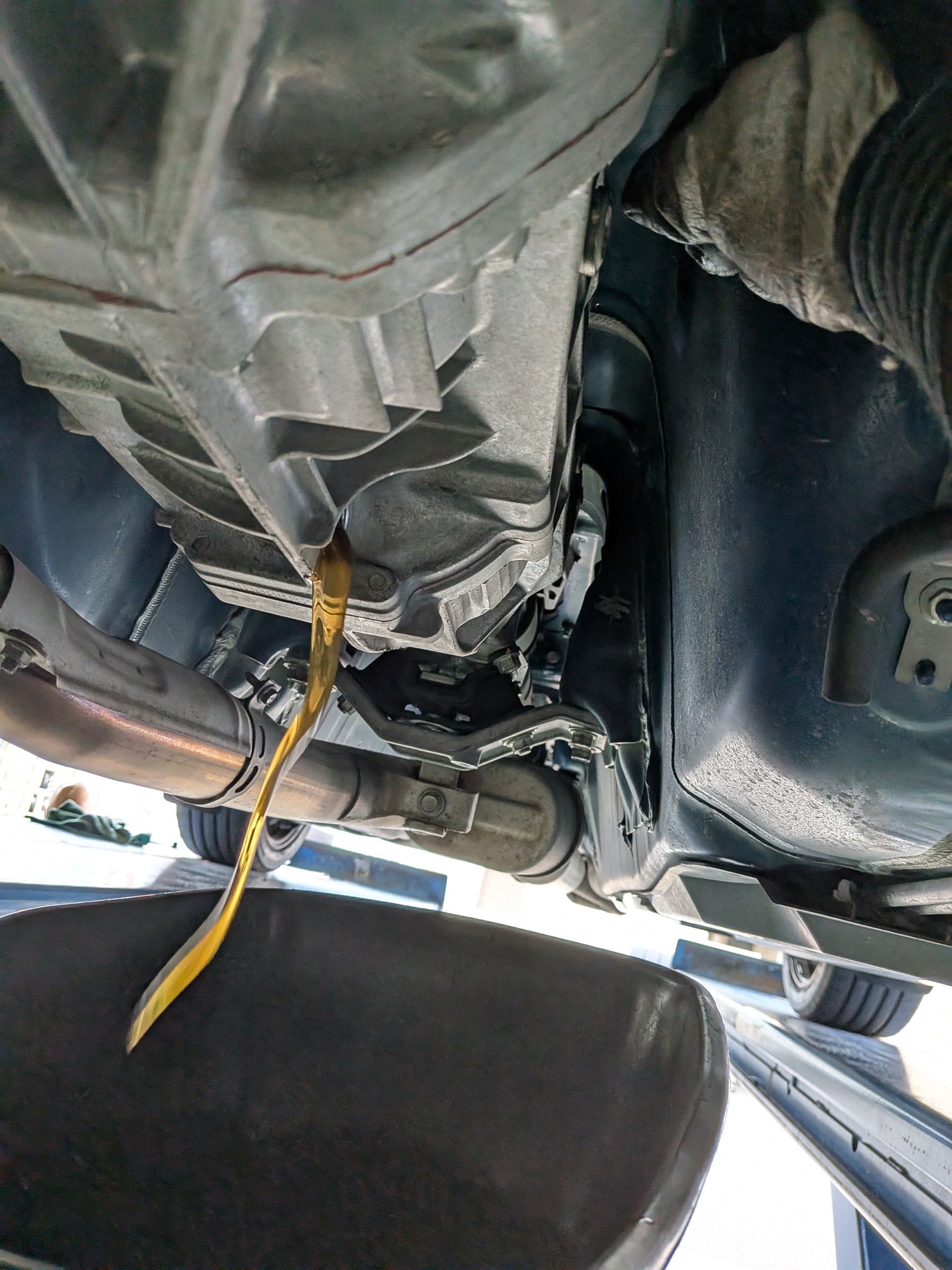 オイル量は2.2Lと丁度なので全部注入して注入口を締めてアンダーカバーを戻して作業終了になります。