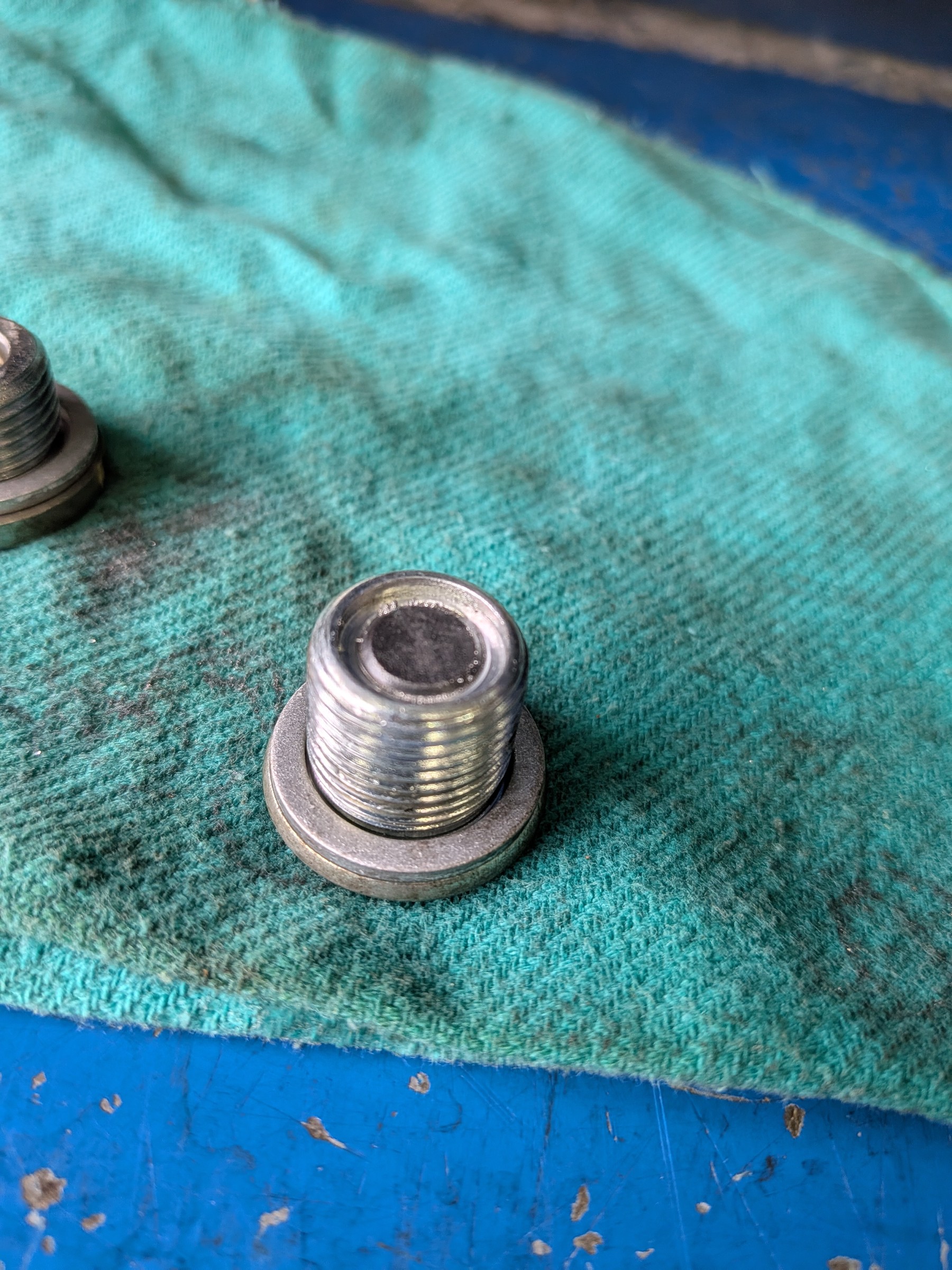 ほんの少し注入口を緩めて排出口のドレンプラグを緩めていきます。