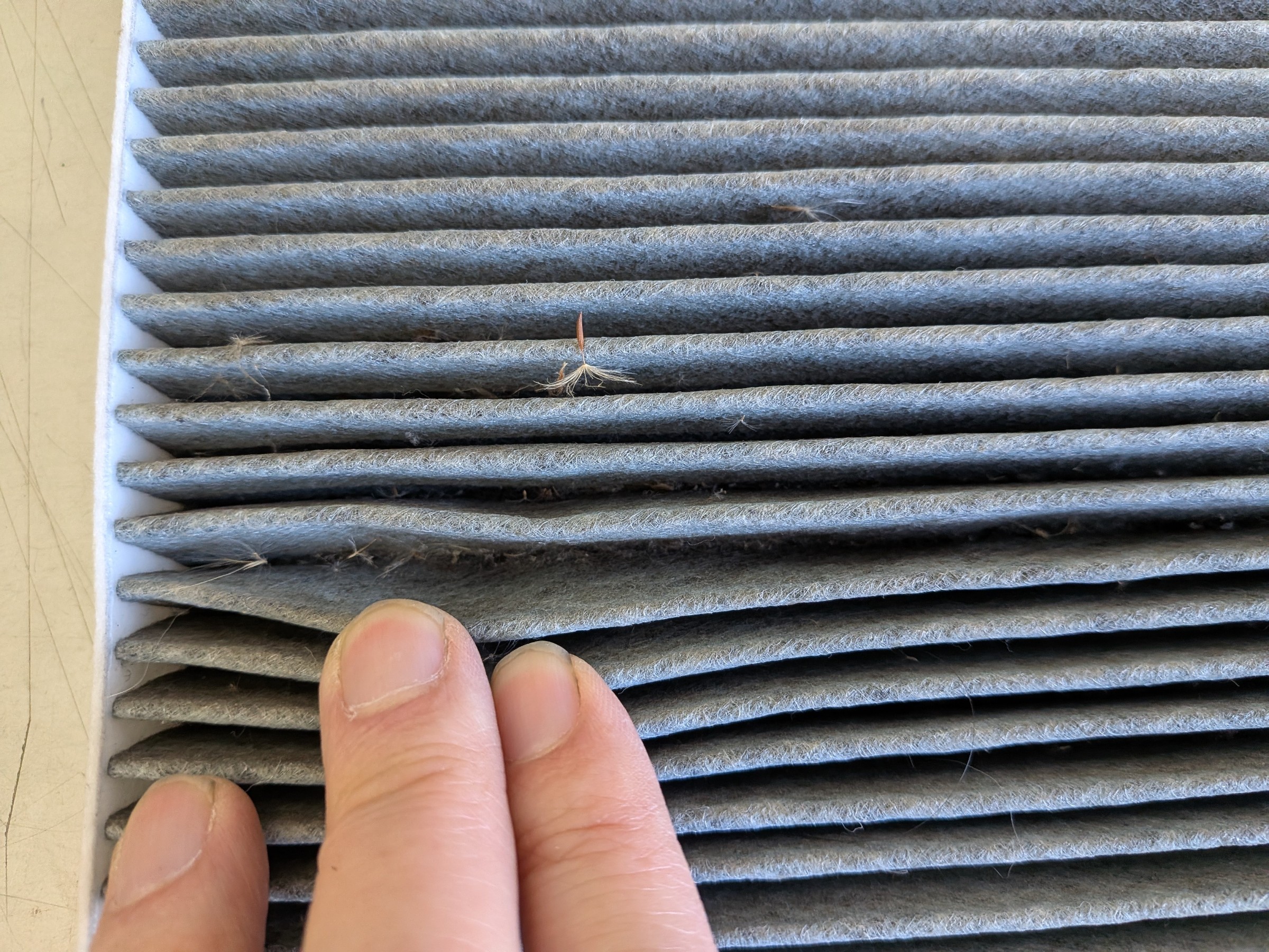まずは、1年以上使用したエアコンフィルターを見てみます。