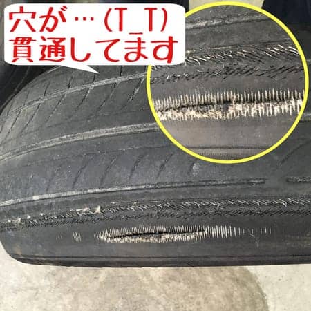写真はパンク?…穴あきタイヤ(T_T)