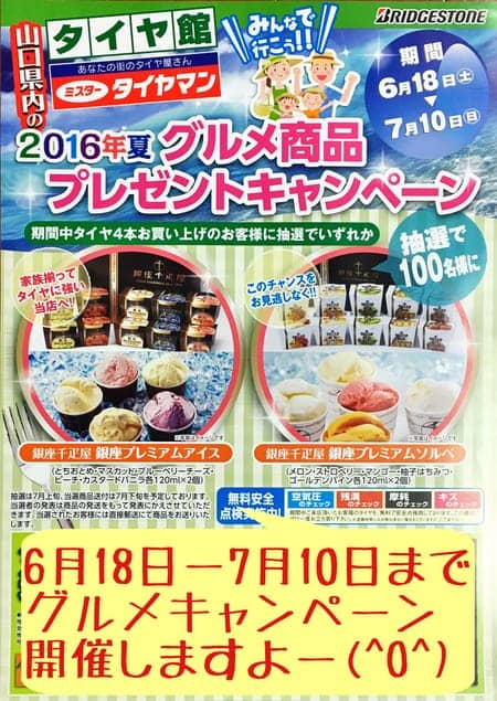 期間中タイヤ4本購入のお客様に抽選で100名様…