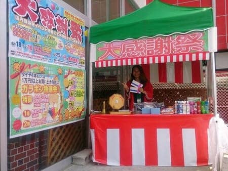 タイヤをご購入いただいた方には、ガラポンで抽選をしていただくんですが