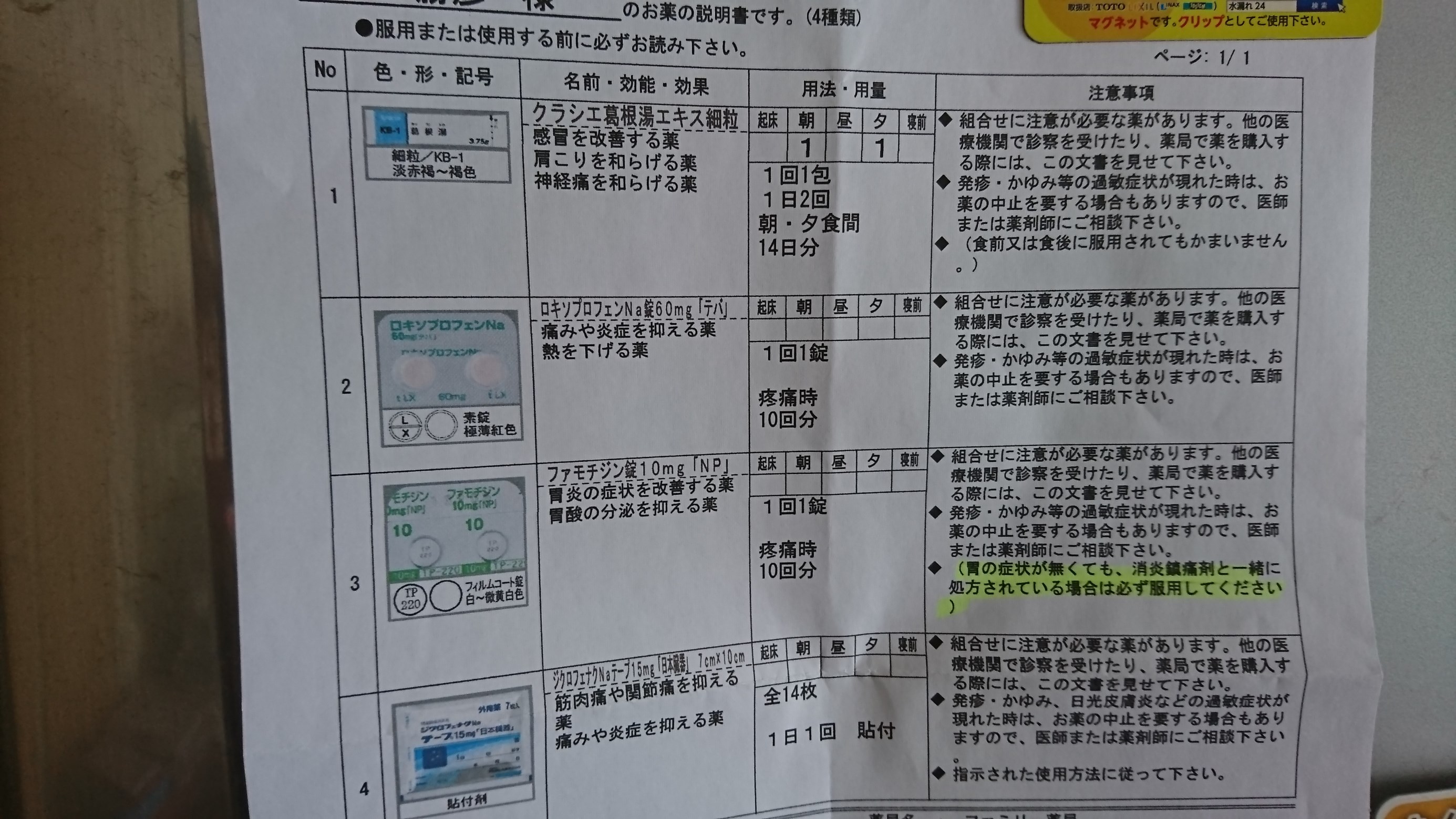 お薬もらったのだが、その3年前の内容とほぼ同じでした!