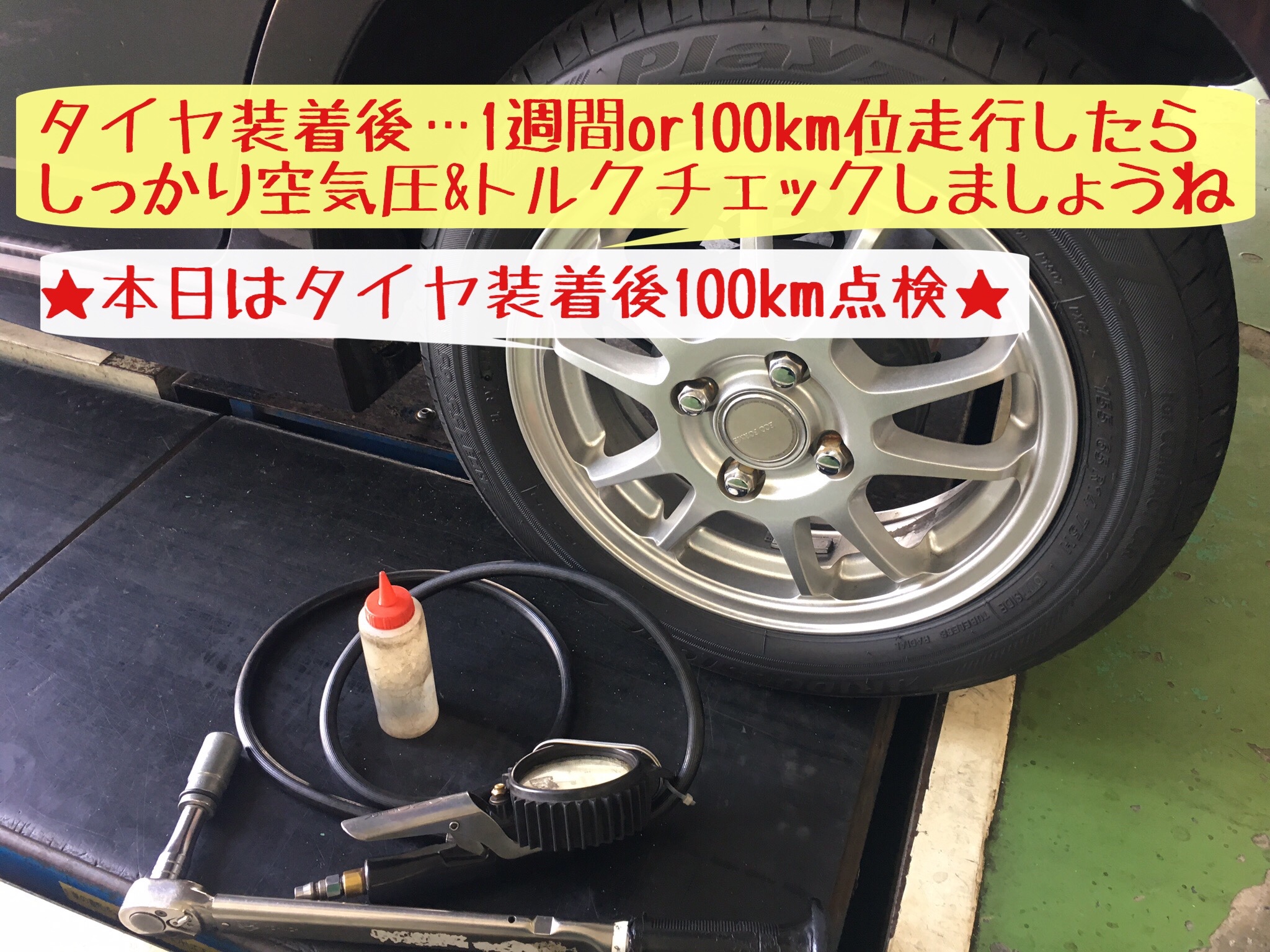 本日は新品タイヤ装着後のタイヤ点検!