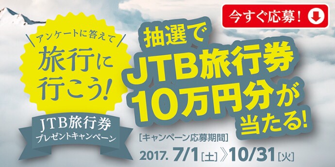 抽選でJTB旅行券10万円分が10名様に当たる!