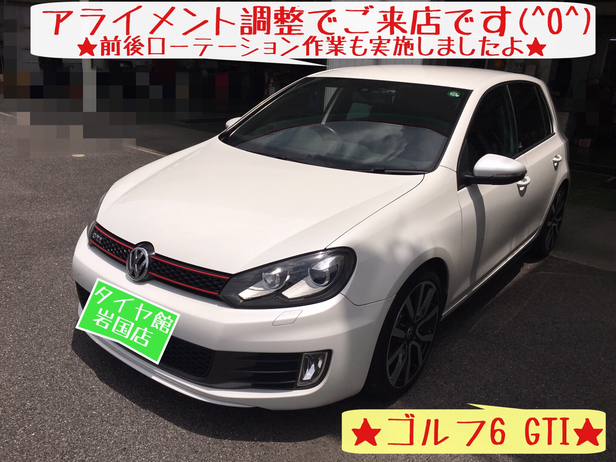 ★車種:フォルクスワーゲン/VW ゴルフ6 GTI アライメント調整 ローテーション タイヤサイズ:225/40R18★