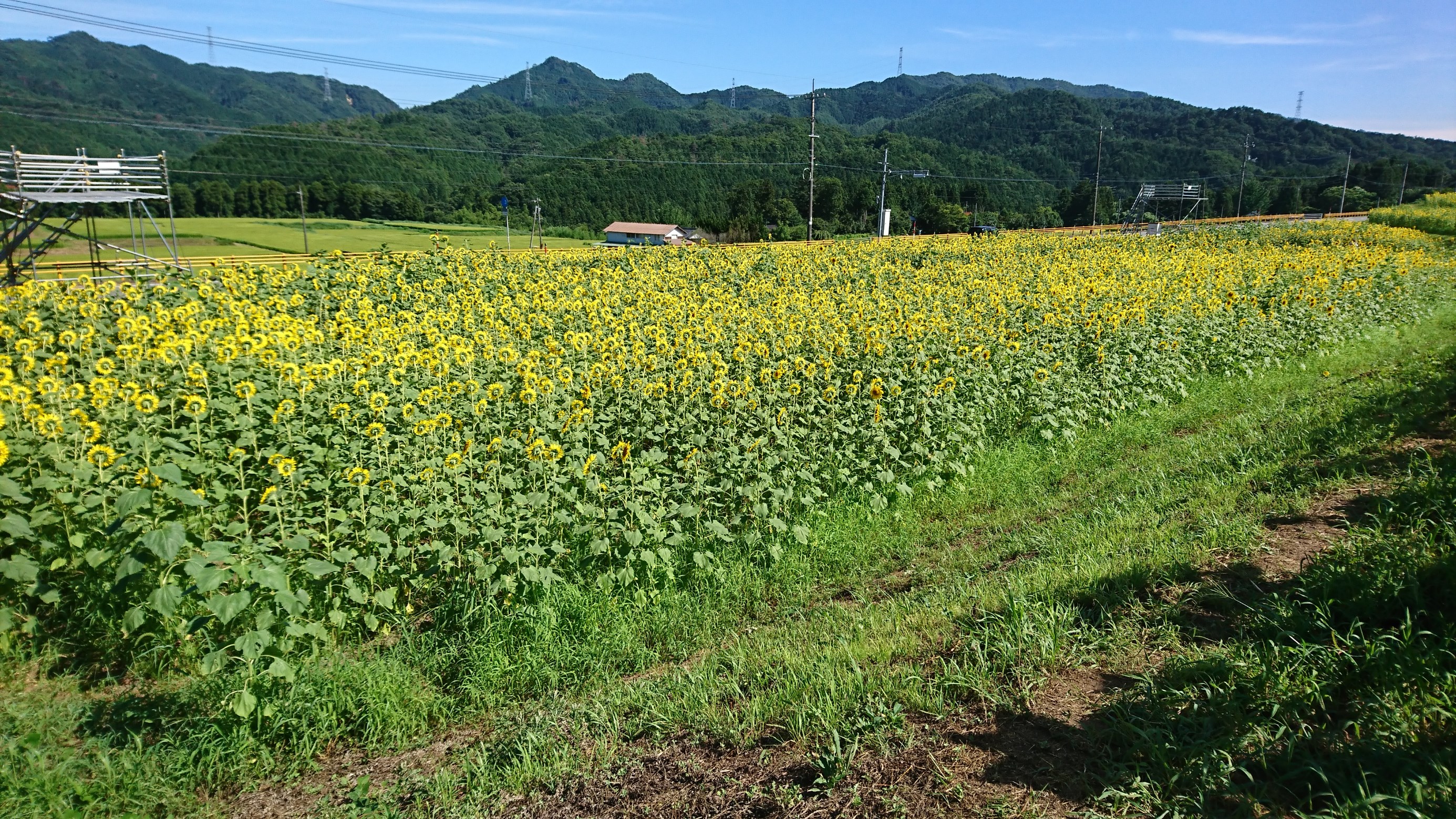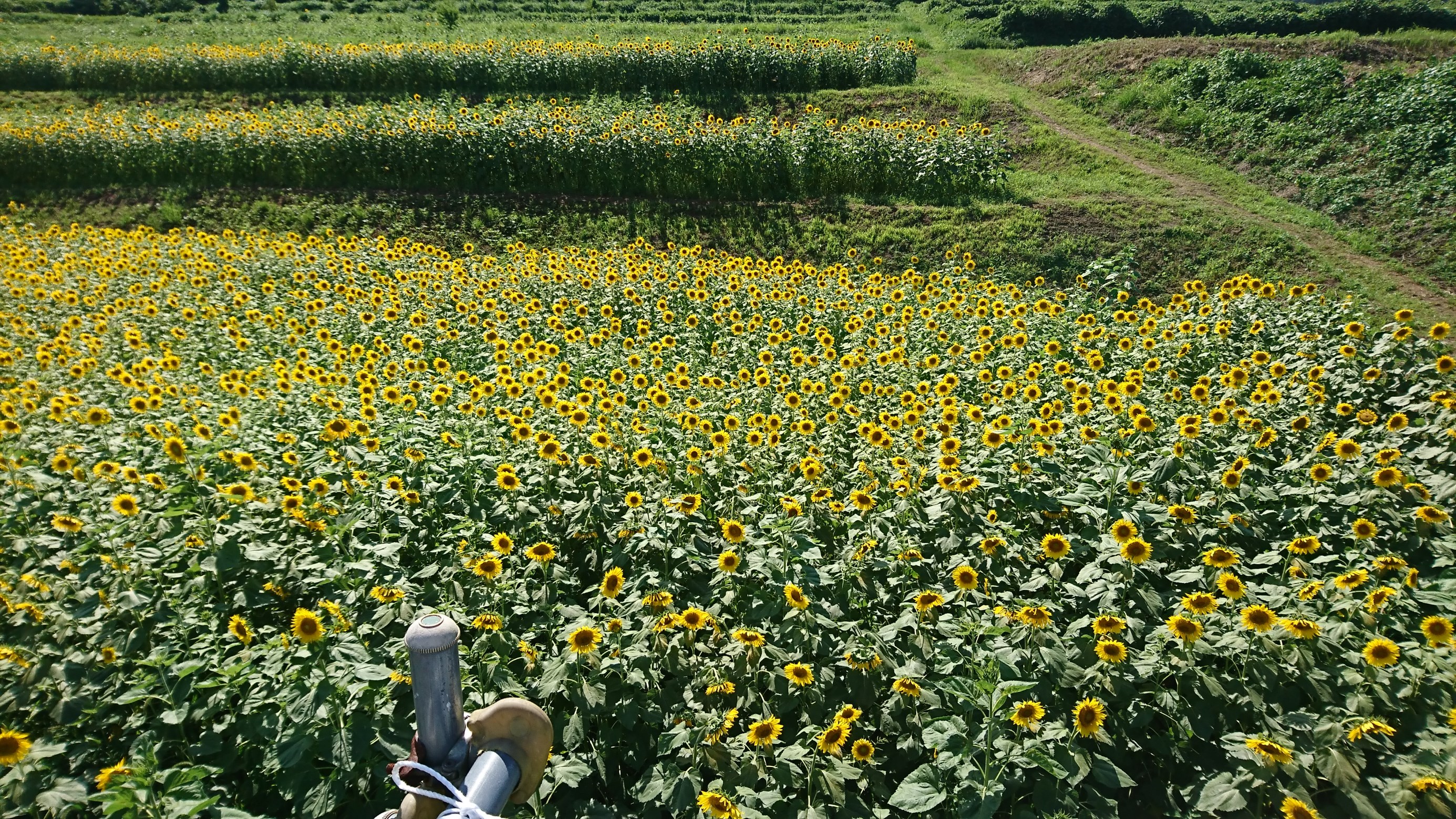 影を見てわかるようにあまりの暑さにひまわりも