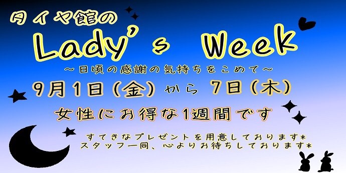 ◆9月も女性に優しい・・・レディースWEEK開催です◆