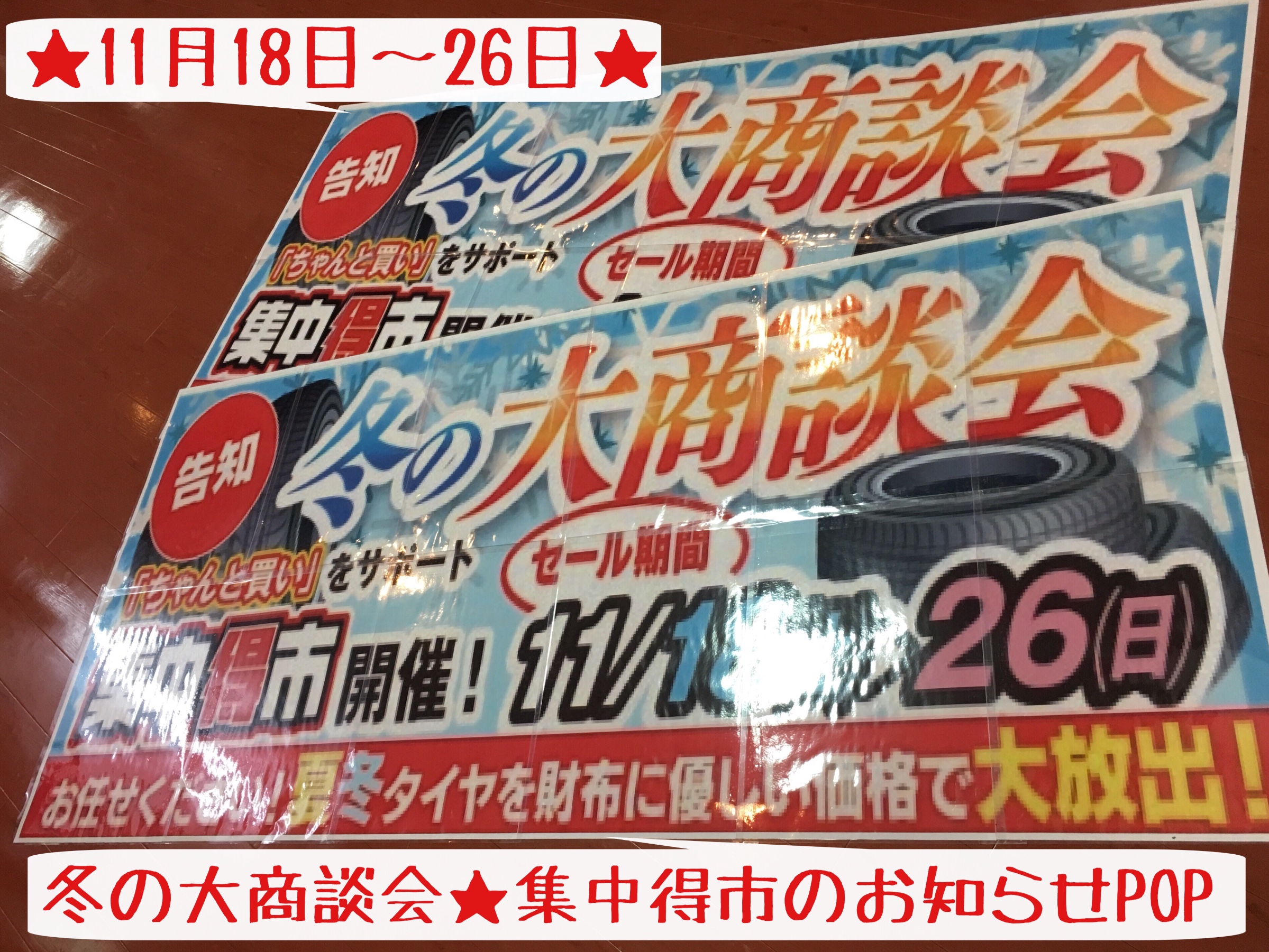 今回は…1)冬の大商談会★集中得市 2)突然の降雪…準備はお早めに! 3)レディースWEEK の3編作成しましたー。