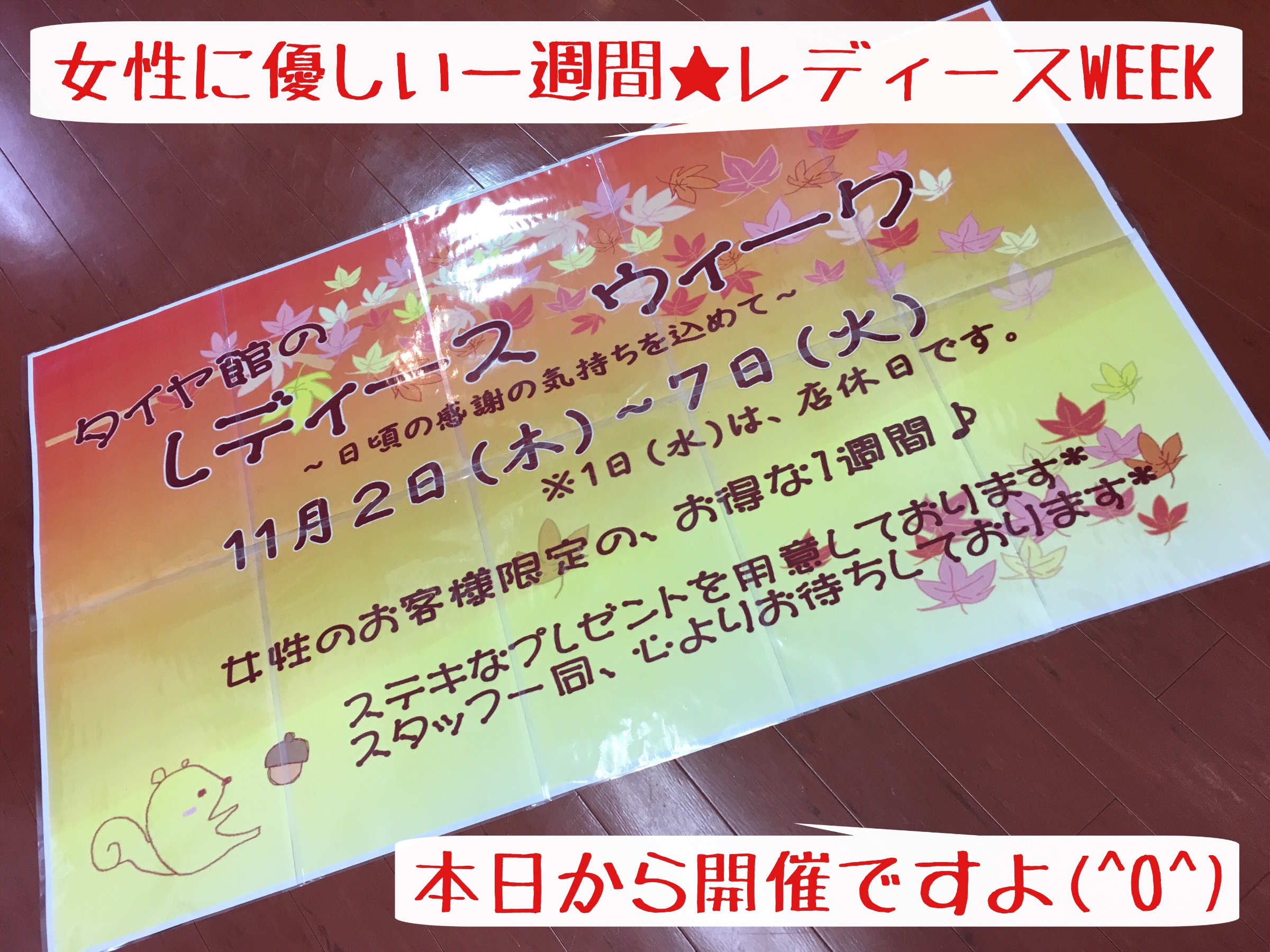 寒くなってきましたので…お出かけの際は一枚多めに羽織って出かけましょうね!今月もタイヤ館岩国店を宜しくお願いします!