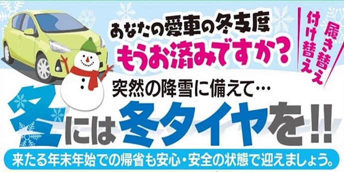 愛車の冬支度はおすみでしょうか?突然の降雪や凍結に備えて…愛車の冬支度しましょうね。
