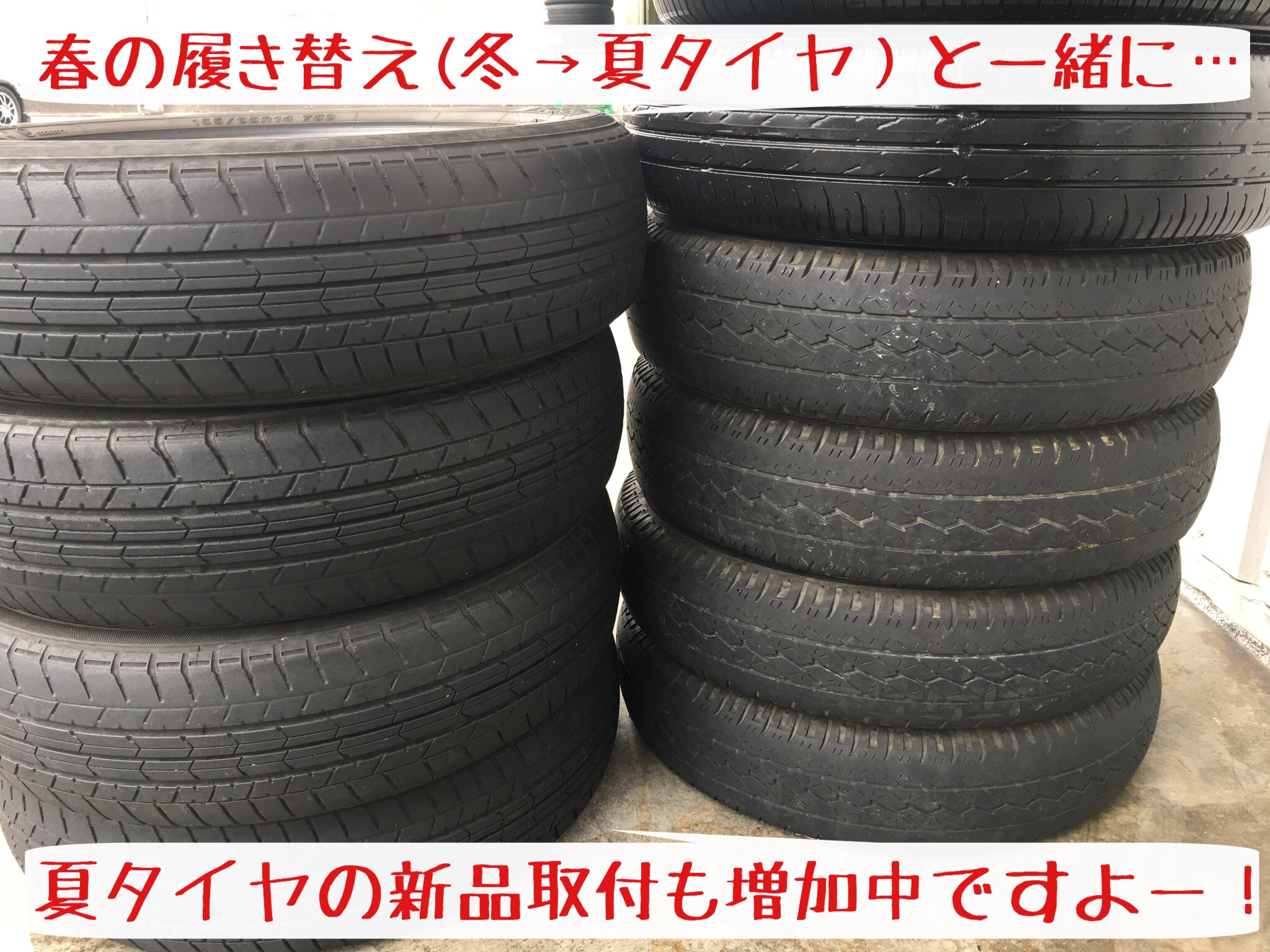 春の履き替え(冬タイヤ→夏タイヤ)に比例して…擦り減ったり経年劣化した夏タイヤの交換も急増中です。