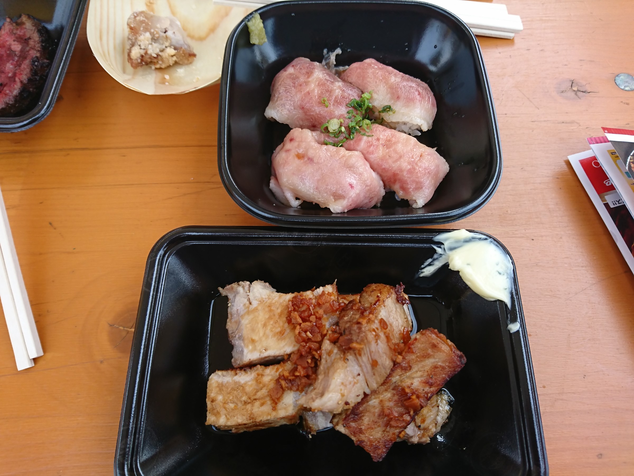 今回は三元豚ステーキ 『焦がしニンニクバター醤油』と『北海道おびら和牛炙り寿し』