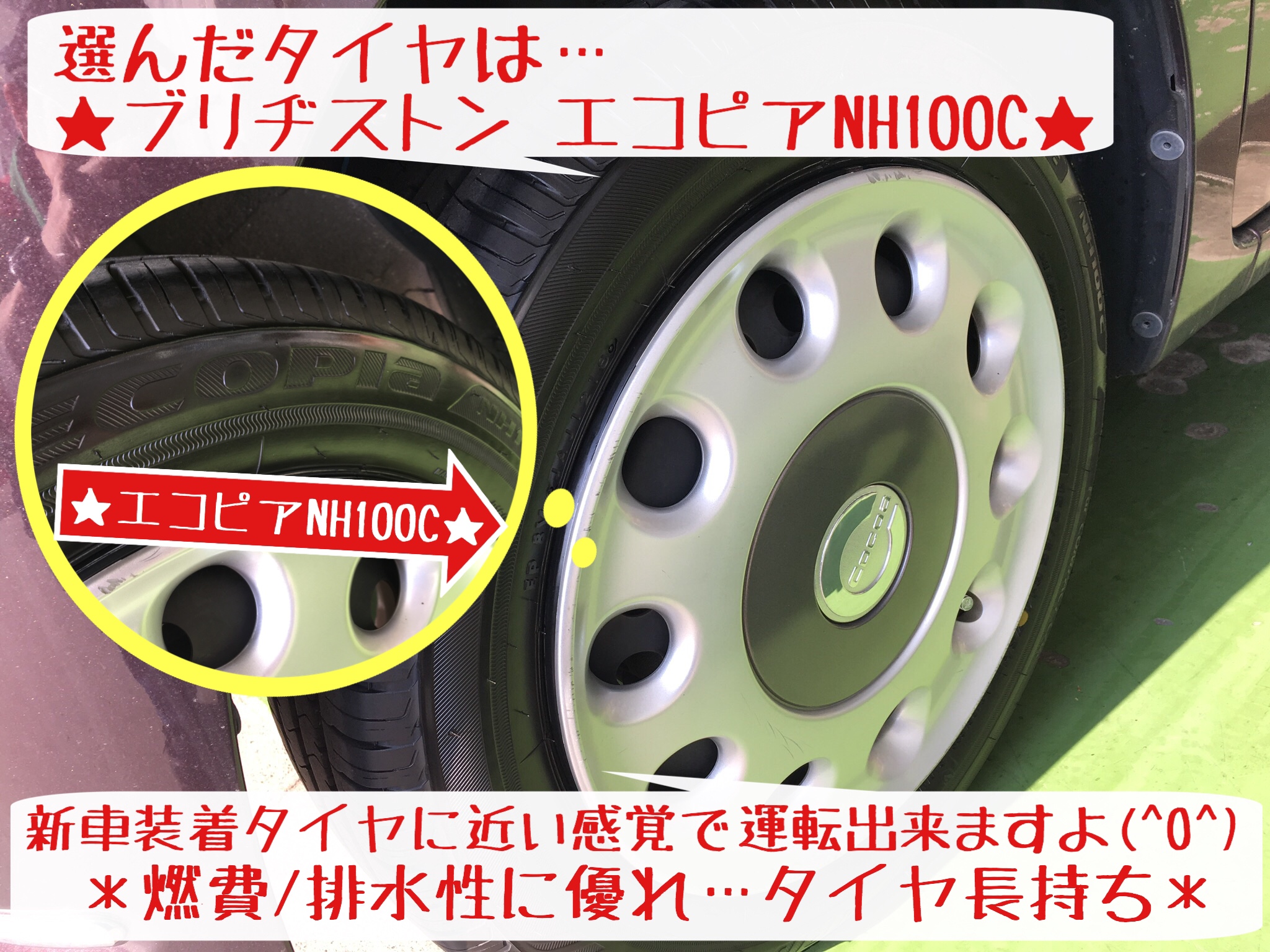 ★車種:ダイハツ ミラココア タイヤ:ブリヂストン エコピアNH100C 155/65R14 タイヤ点検 空気圧点検 ローテーション アライメント測定&調整★