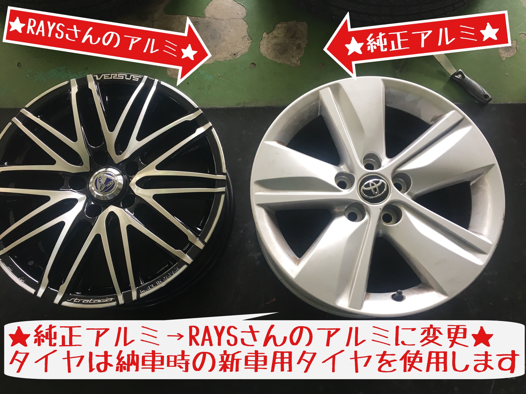 今回は純正アルミ→RAYSさんのアルミに変更。タイヤは納車時の新車装着タイヤを使用します(^O^)