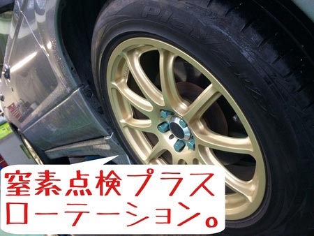 オイル交換★窒素点検…タイヤ前後入替ローテーション。