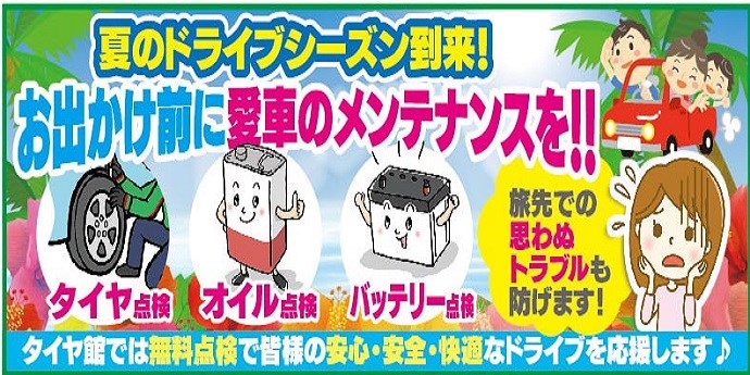 お出かけドライブ前に・・・愛車のメンテナンス点検お気軽に!