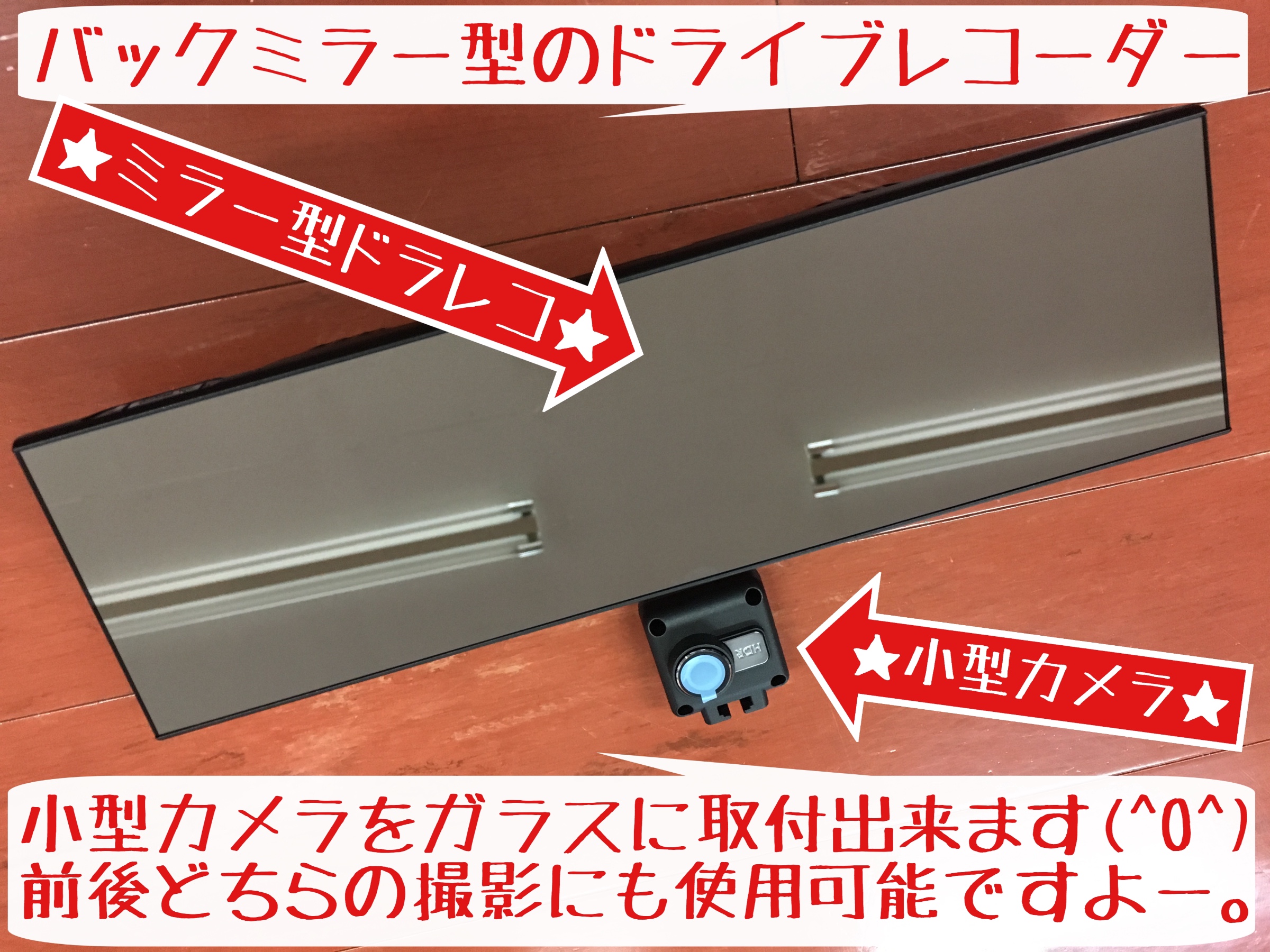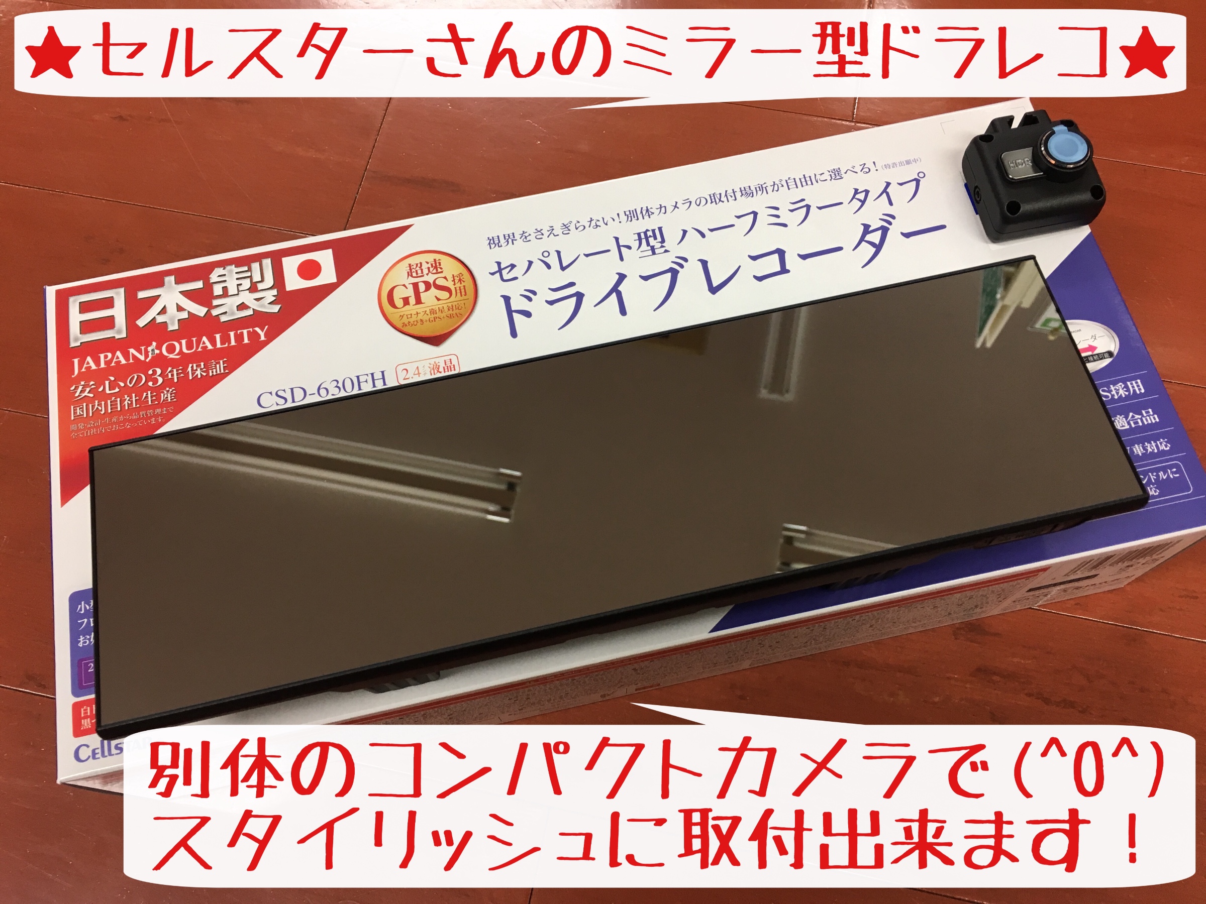 今回紹介させて頂いたセルスターさんのミラー型ドラレコ(^O^) ミラーとカメラがセパレートですよ!