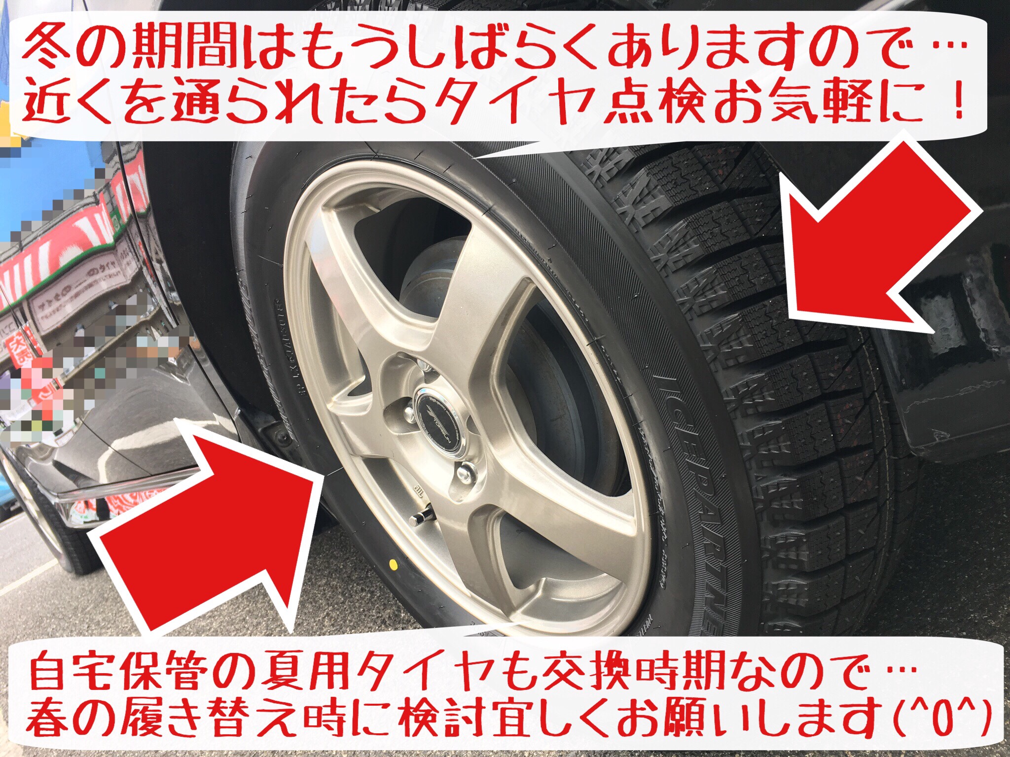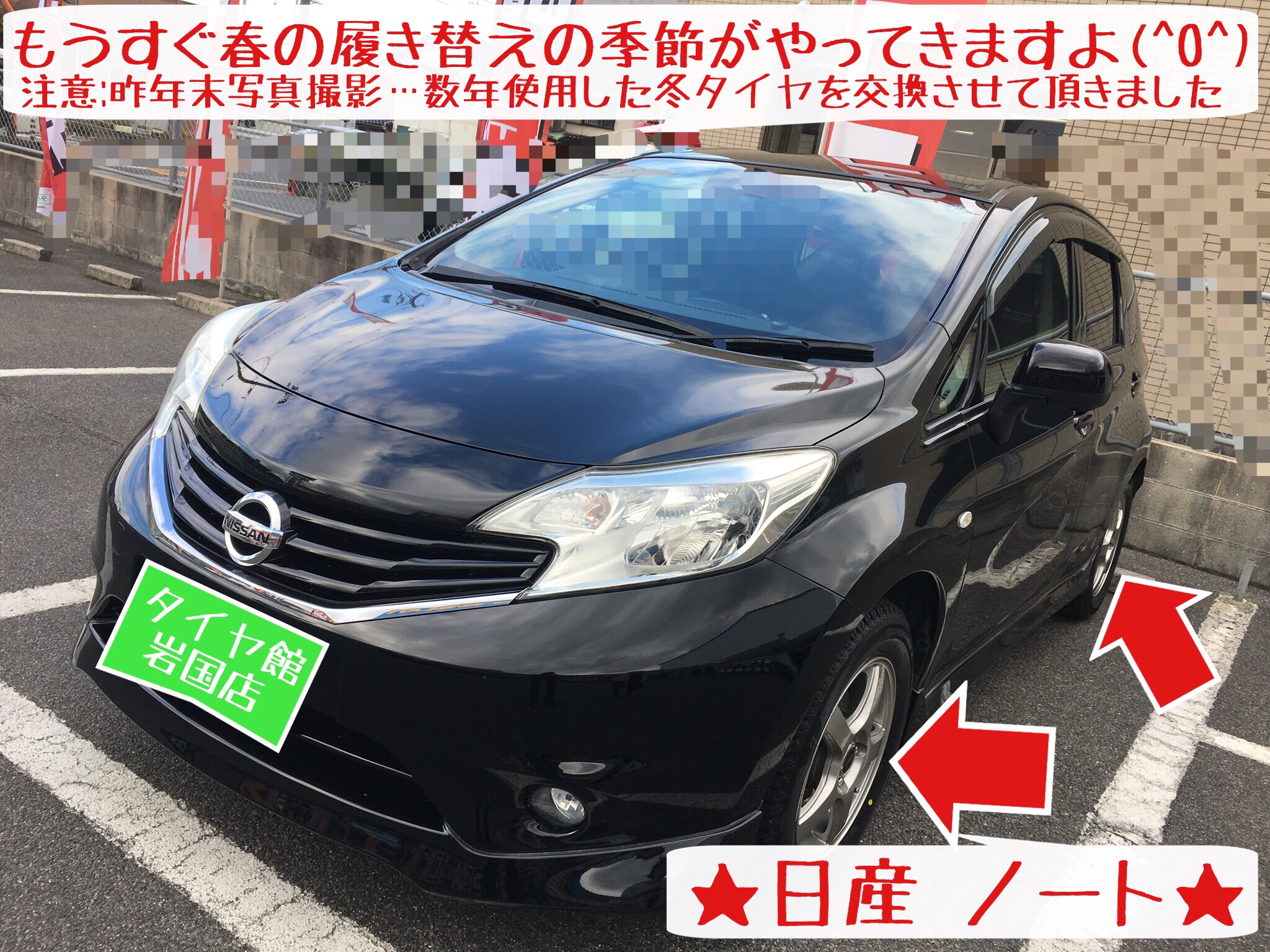 いつもご利用いただいている★日産 ノート★さん。昨年末4年くらい使用した冬タイヤを交換させて頂きました(紹介が遅くなり…申し訳ございません)。その後しっかりタイヤ点検にもご来店頂き…ありがとうございます。もうすぐ3月になりますよ・・・今度は夏タイヤ(新車装着タイヤ)の交換時期になりますので・・・ご相談お待ちしています。