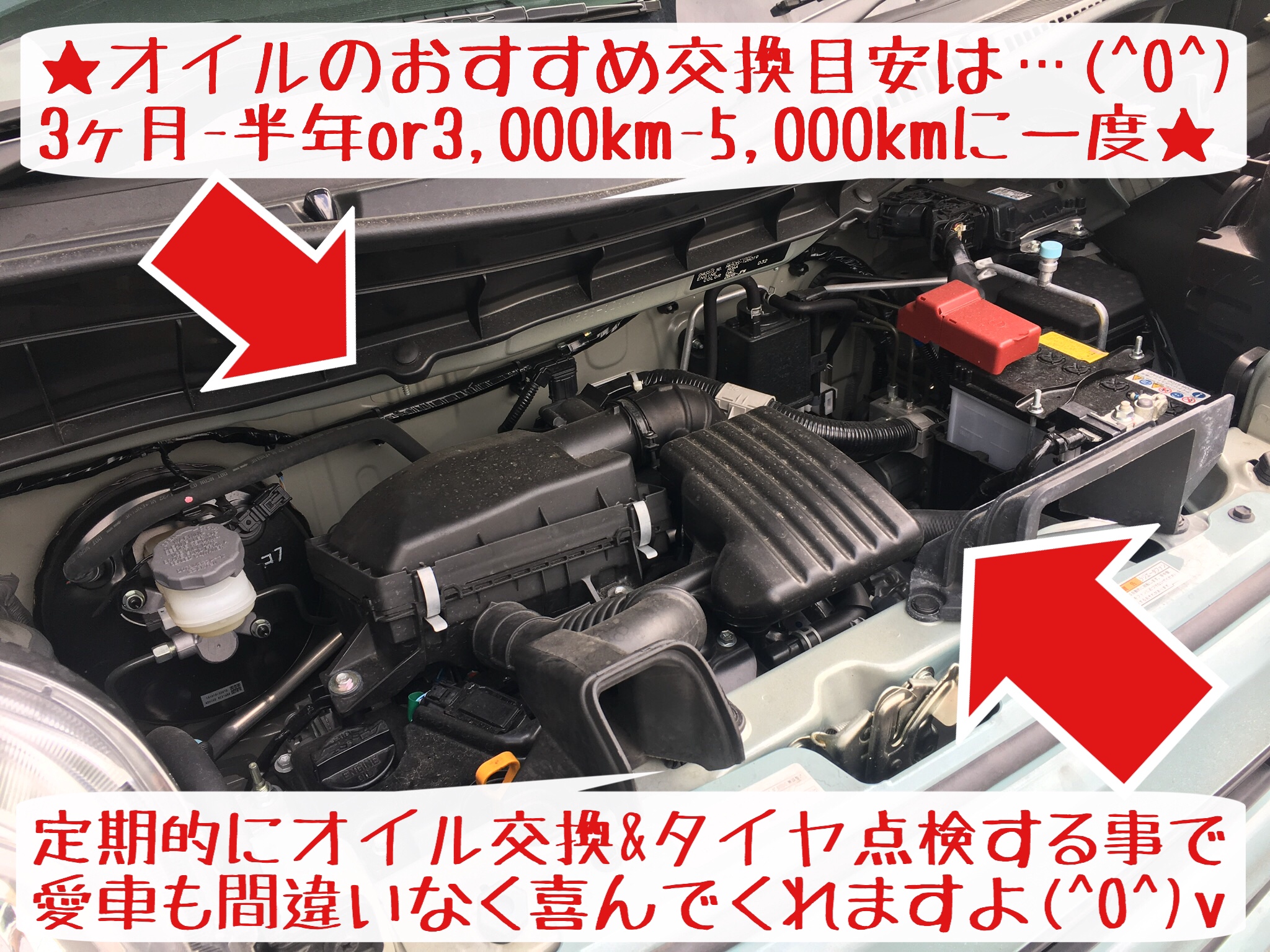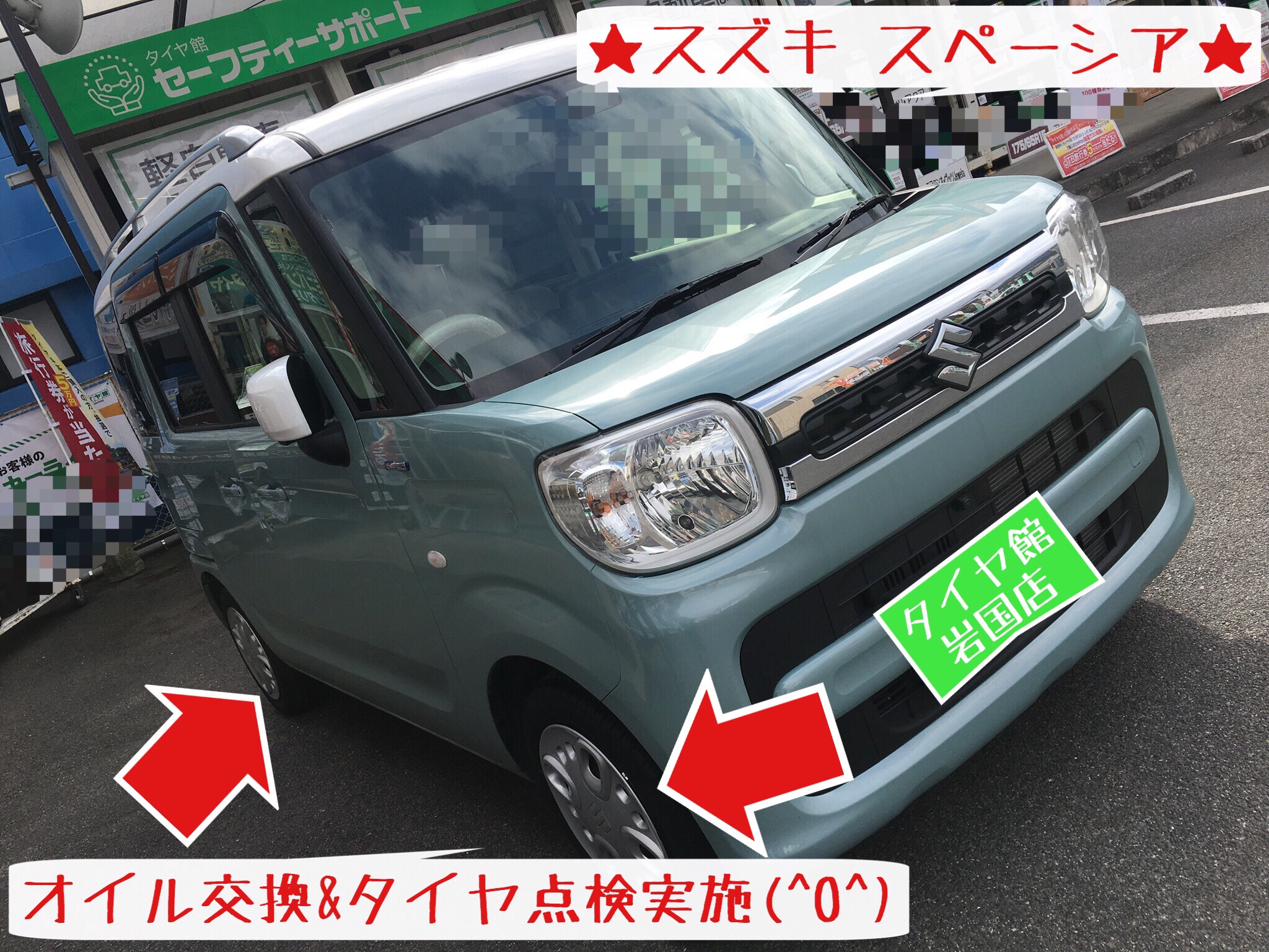最近こちらのお車に乗る機会が増えて…走行距離が急激?に伸び始めた★スズキ スペーシア★さん。今回オイル&エレメント(フィルター)交換をさせていただきました・・・もちろん同時にタイヤ点検(空気圧など)も実施しましたよ。