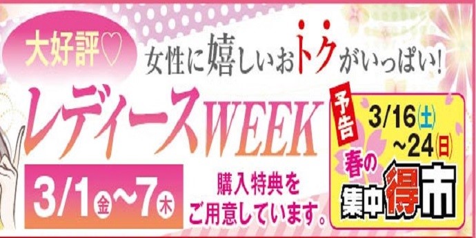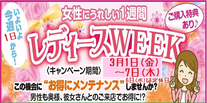 ◆女性に優しい・・・レディースWEEK開催します◆