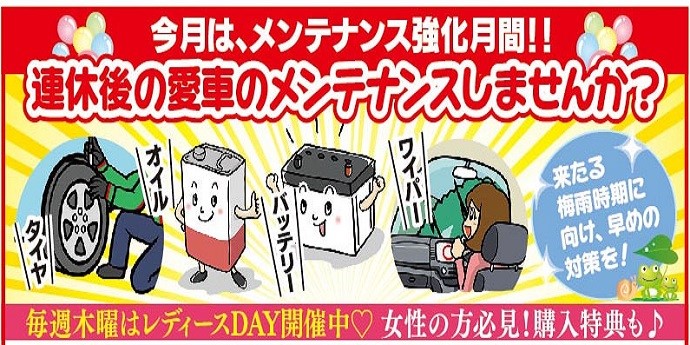 【大型連休を頑張った愛車】のメンテナンス点検強化月間ですよ。