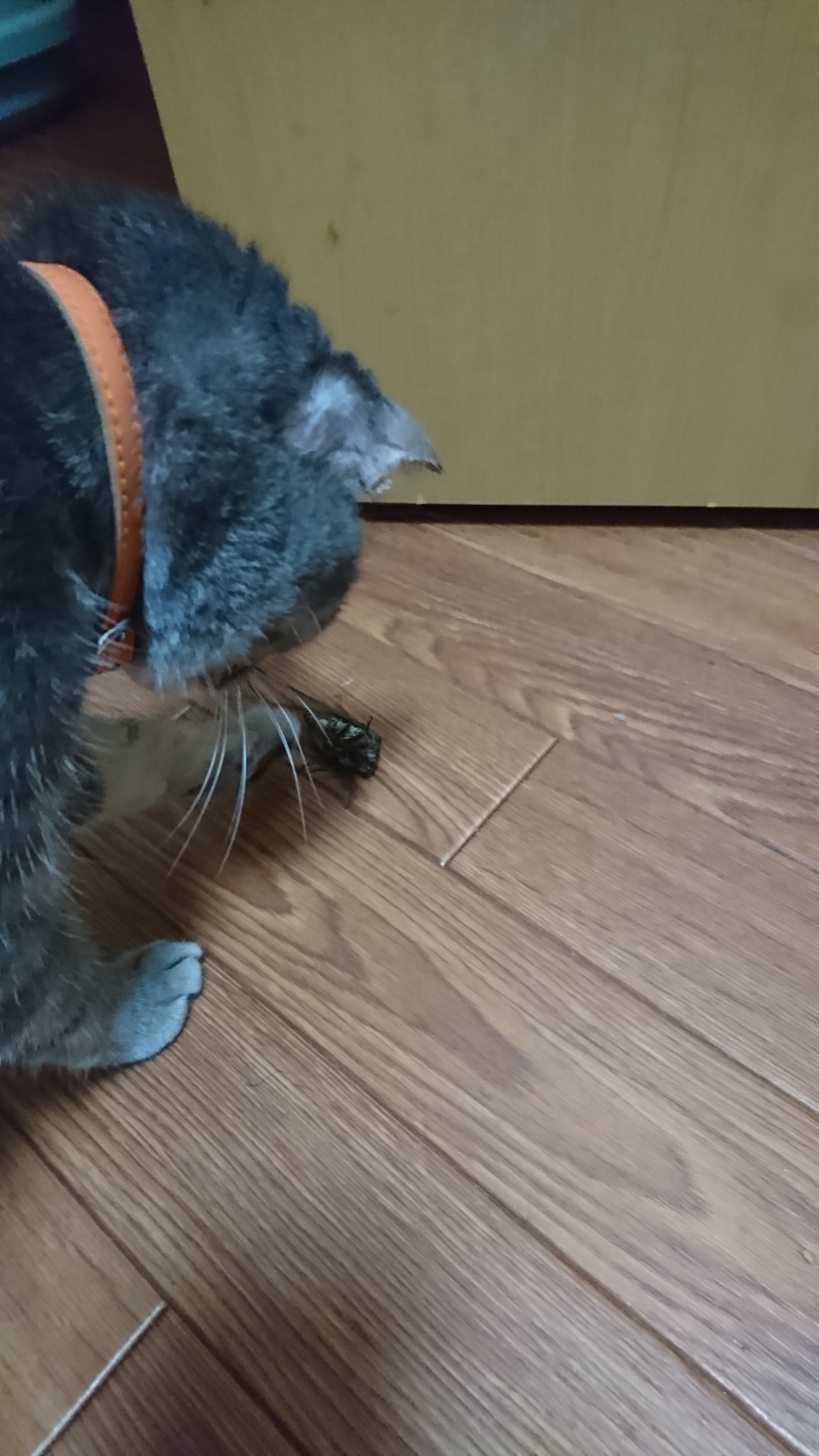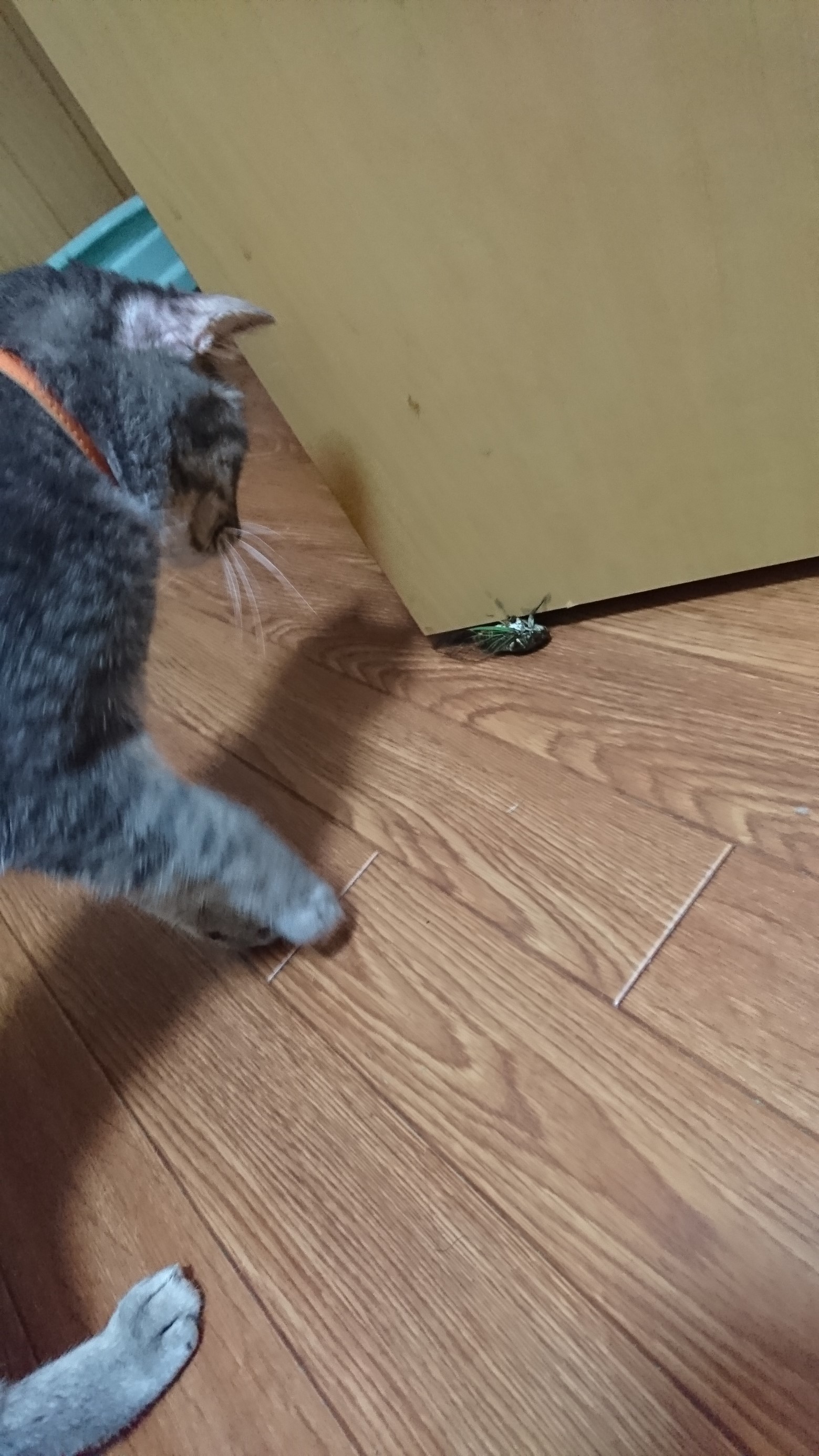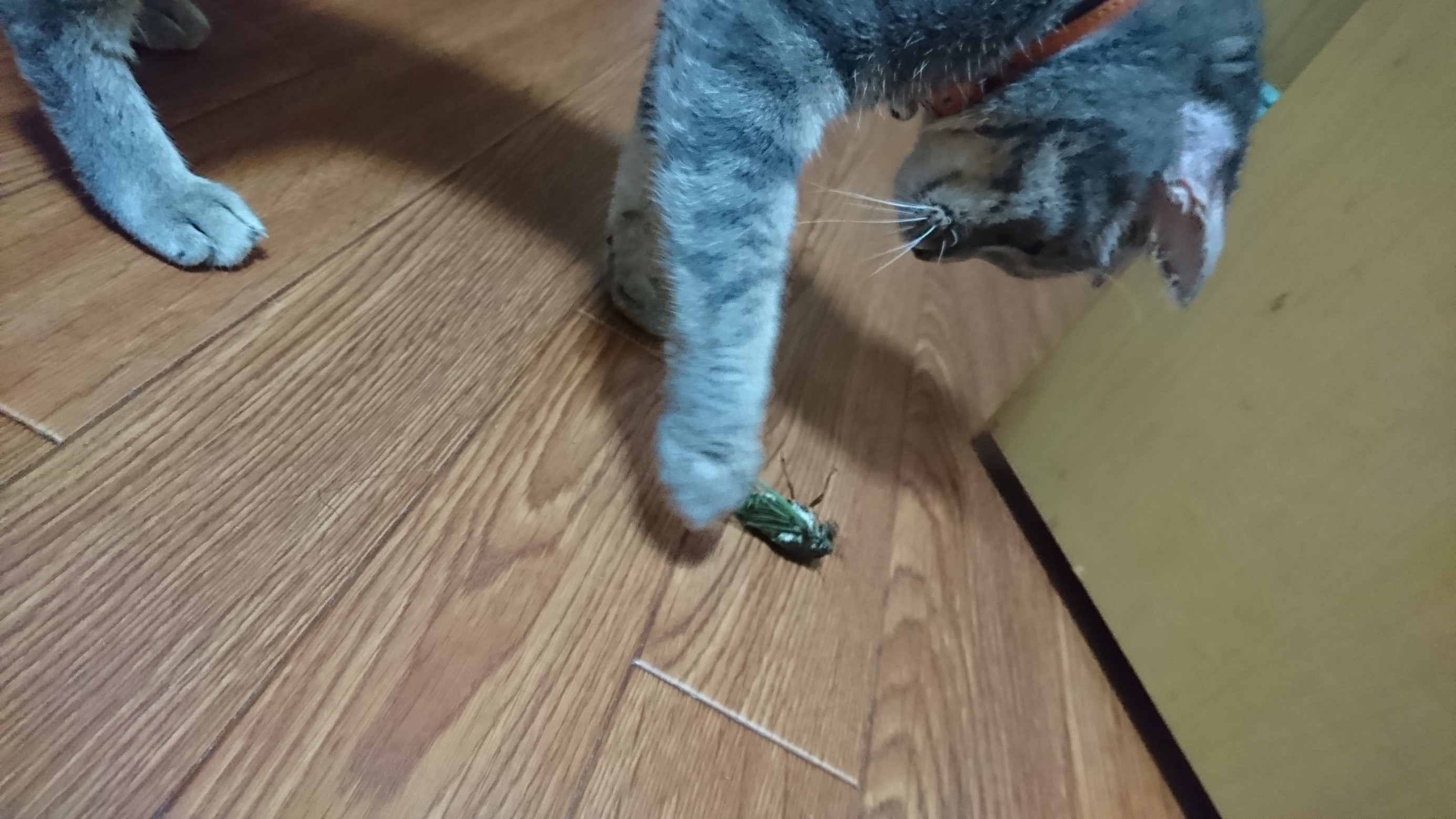 仕事から戻り玄関を開けると、セミが一緒に入ってきた!