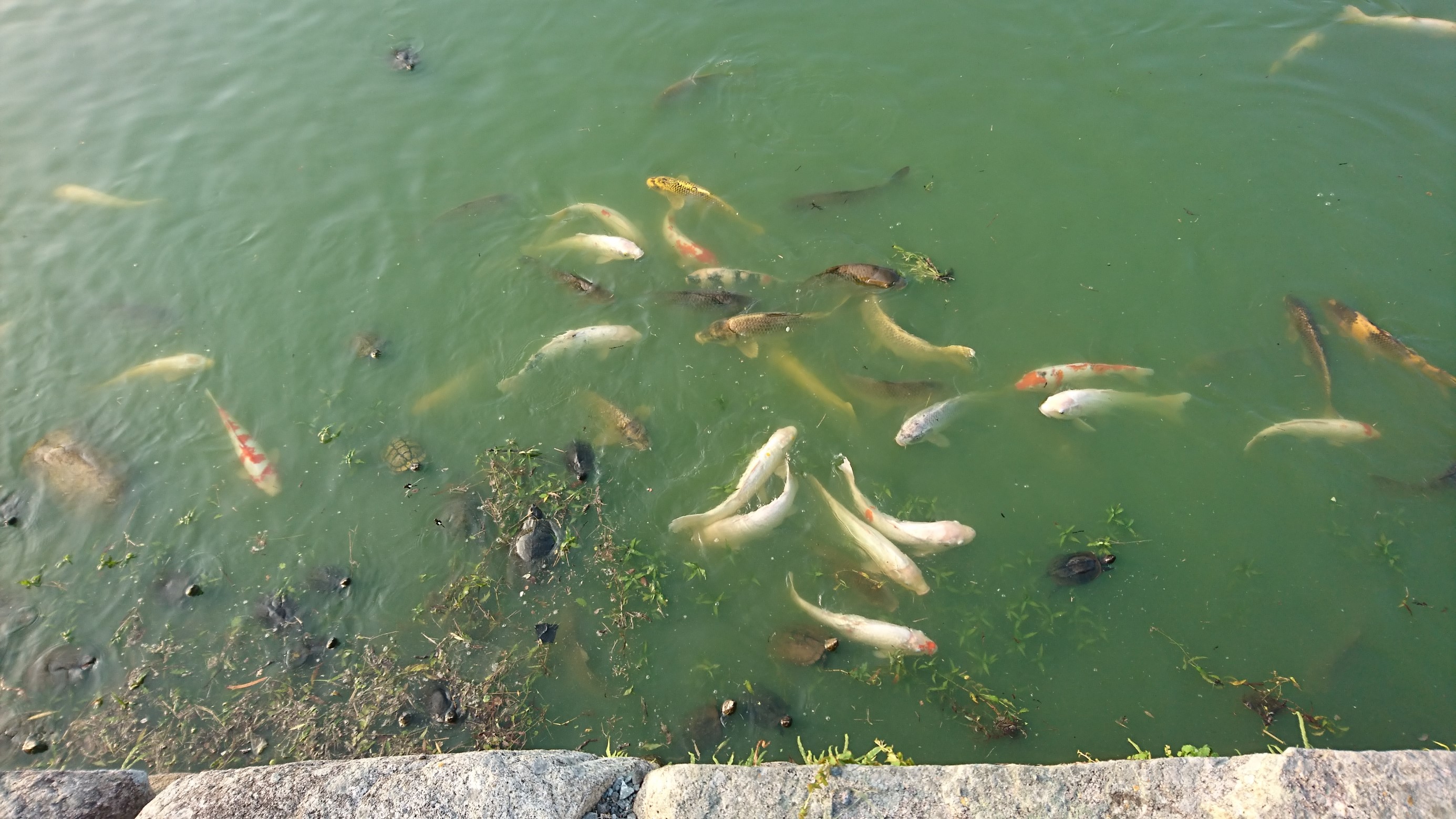 まずは、萩城の跡地で亀と鯉を見に行く。