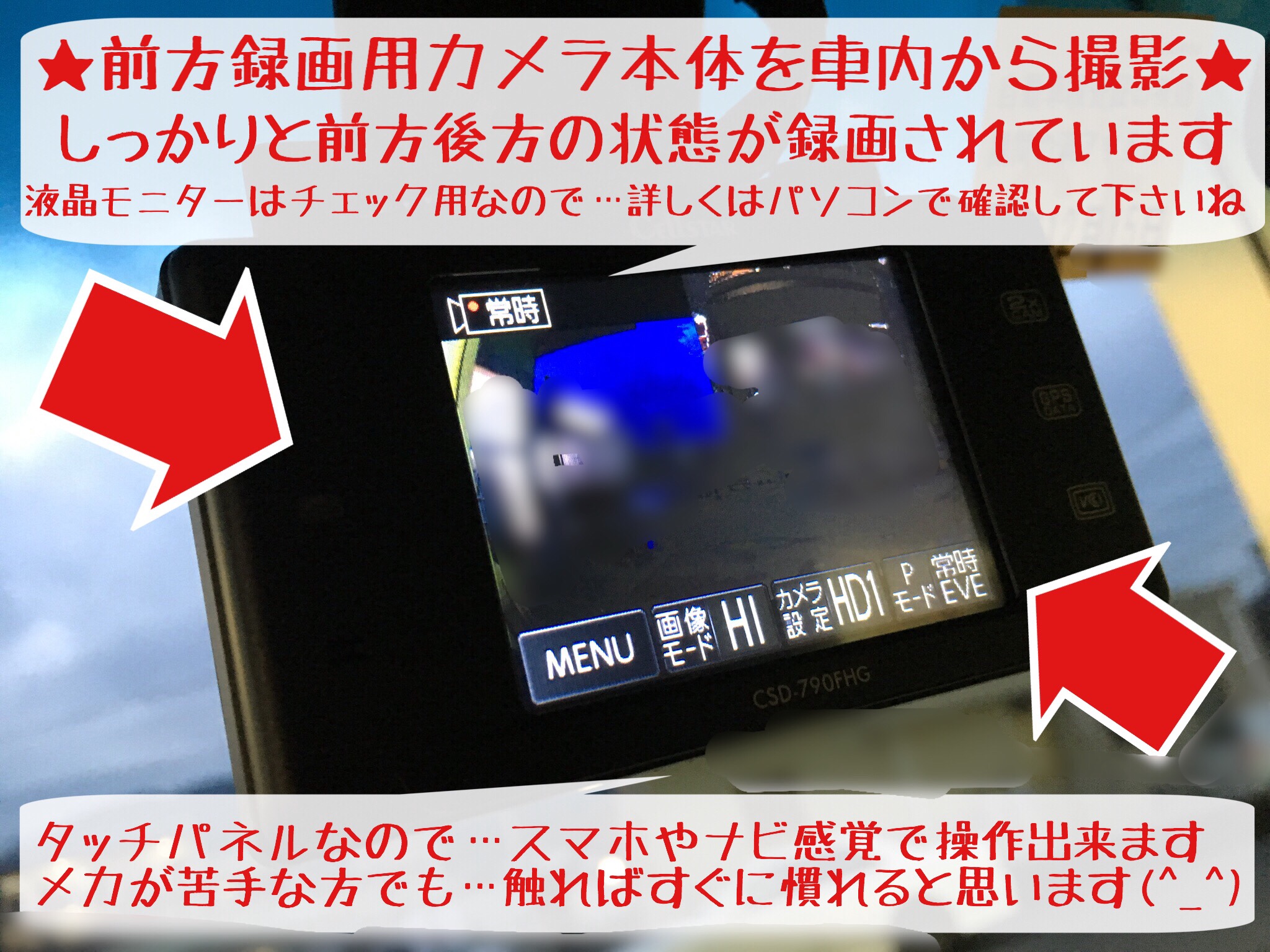 ▶︎おすすめポイントは…①前後録画可能 ②タッチパネルで操作がラクラク ③SDカードのフォーマットが不要(もちろん定期的なフォーマットをおすすめします)…など色々ありますよ(^_^)