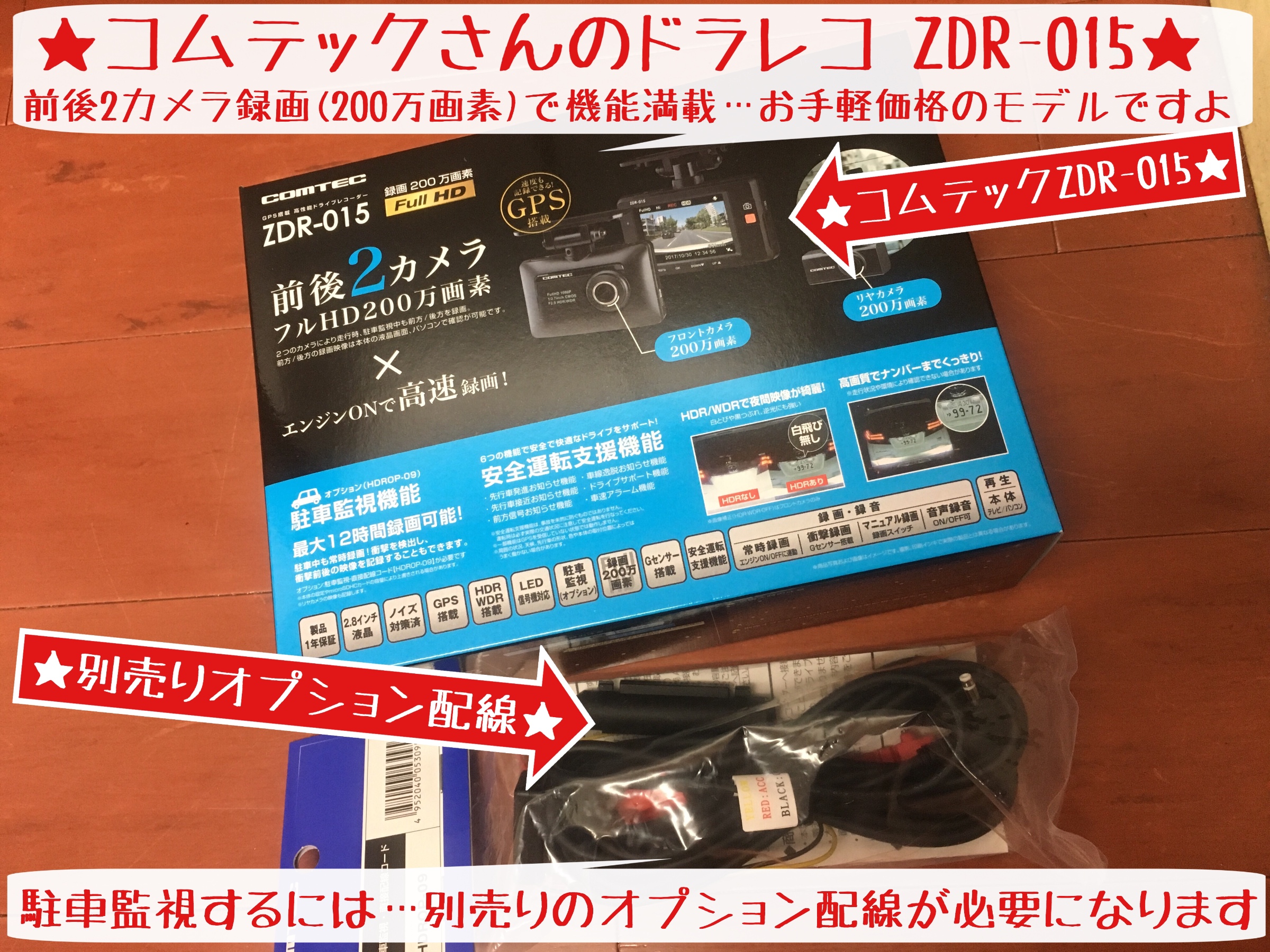 これからの季節のお出かけ&ドライブ…通勤や買い物の必需品?かもしれないドライブレコーダーの紹介ですよ(^O^) 今年の初め発売されたコムテックさんの最新ドライブレコーダー(通称ドラレコ)★ZDR-015(クリックしてね)★ですよー。。。