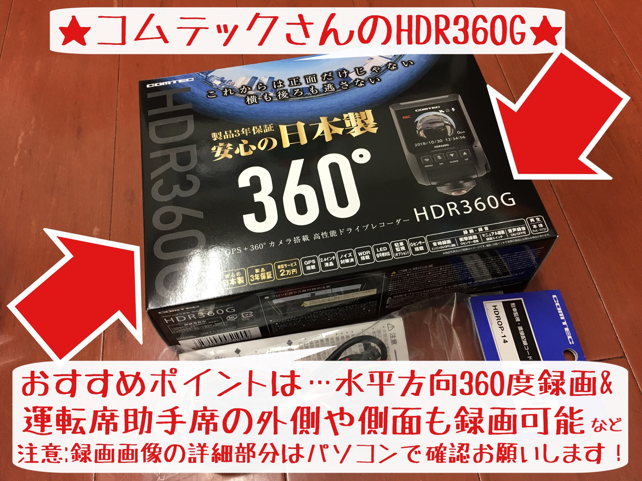 ▶︎コムテックさんの水平方向360度録画モデルHDR360G ←クリックしてね!