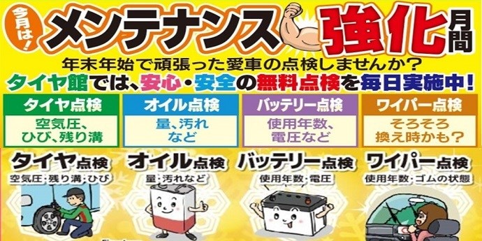 【年末年始頑張った愛車】のメンテナンス点検強化月間ですよ。