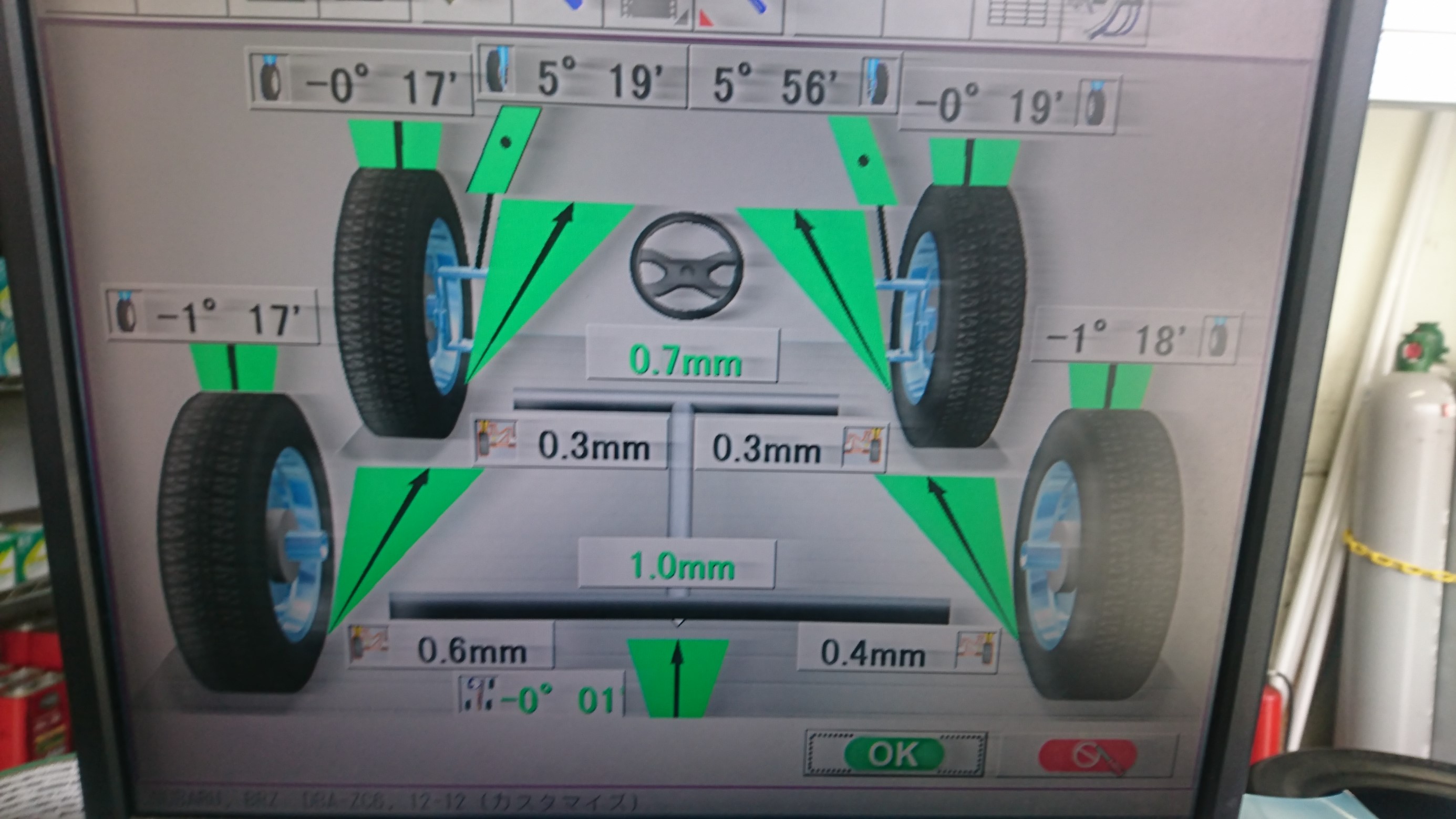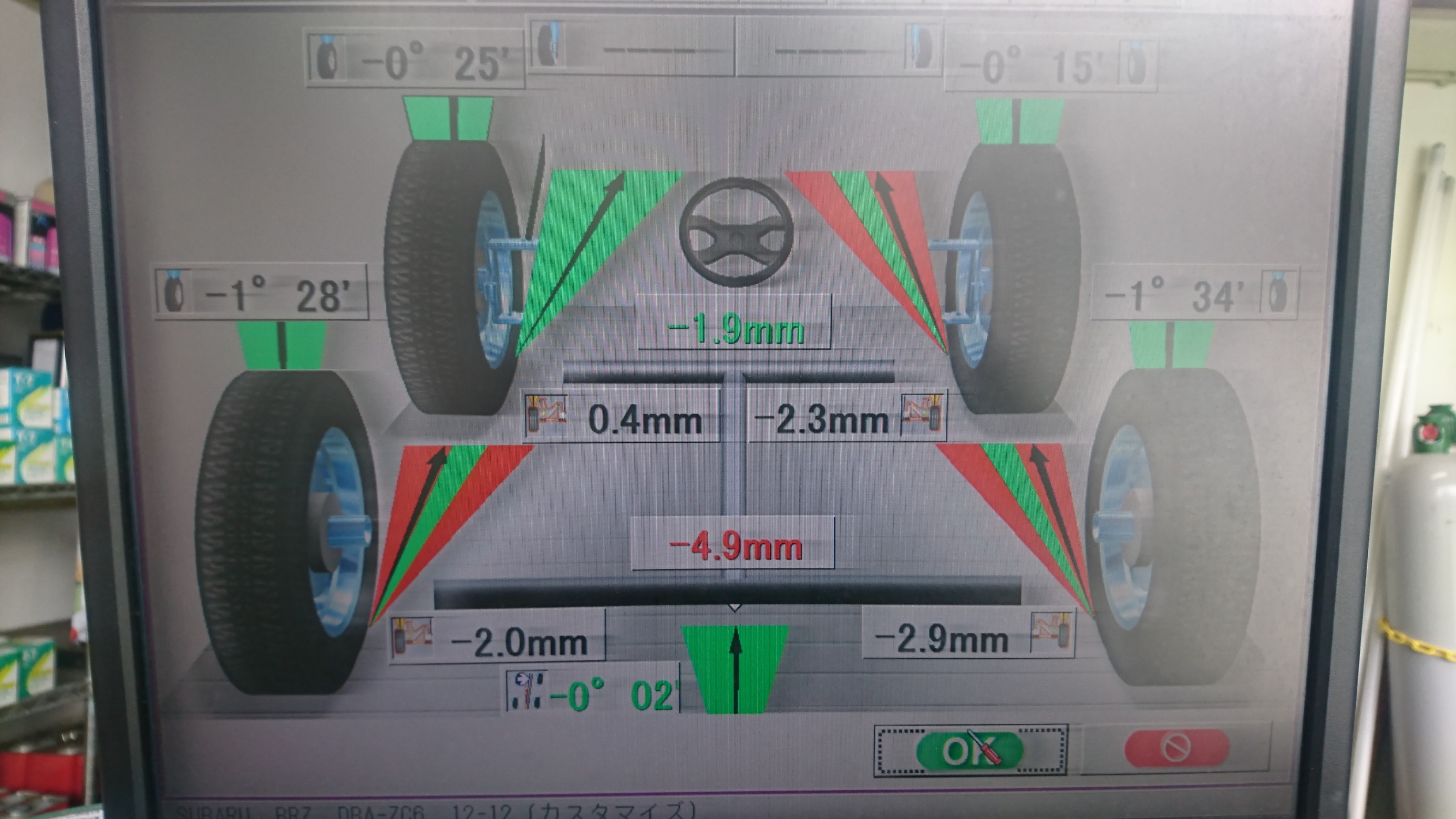 リアのトーが開いてる!更に右フロントのトーも開いてるし・・・・