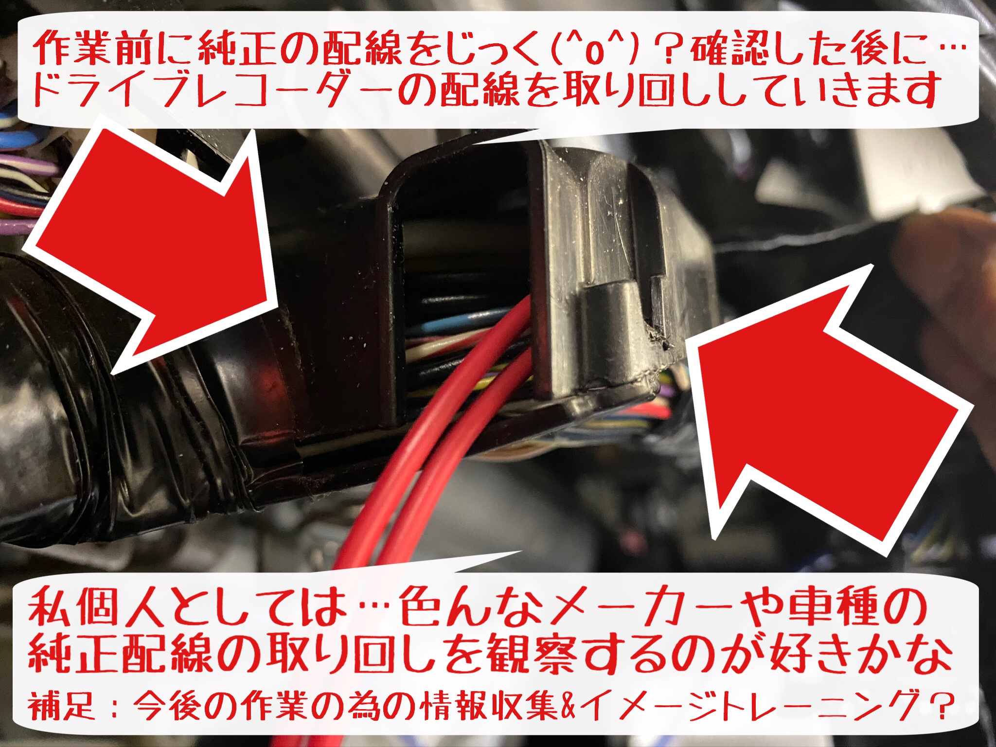 こんな感じで…考えながら作業させて頂いていますよー。愛車に ドライブレコーダー ドラレコ 装着を検討されている方は是非岩国店スタッフまで相談お待ちしています!