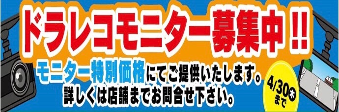 岩国店では4月末まで…春の ドライブレコーダー ドラレコ モニター募集しています!