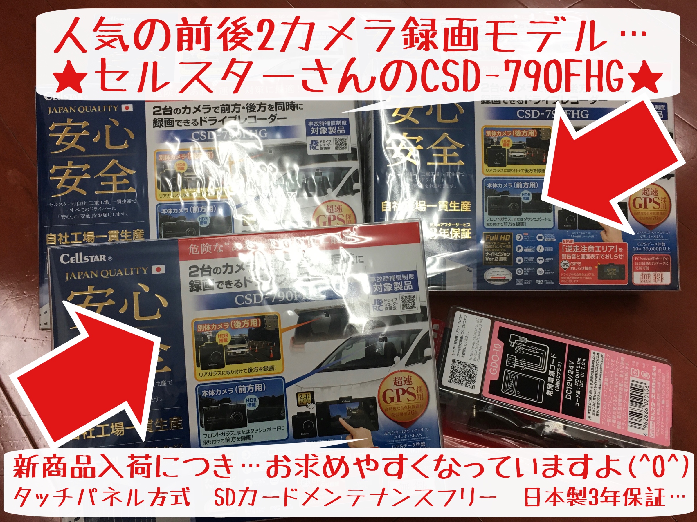 ★セルスターさんのCSD-790FHG(前後2カメラタイプです…クリックしてね)★