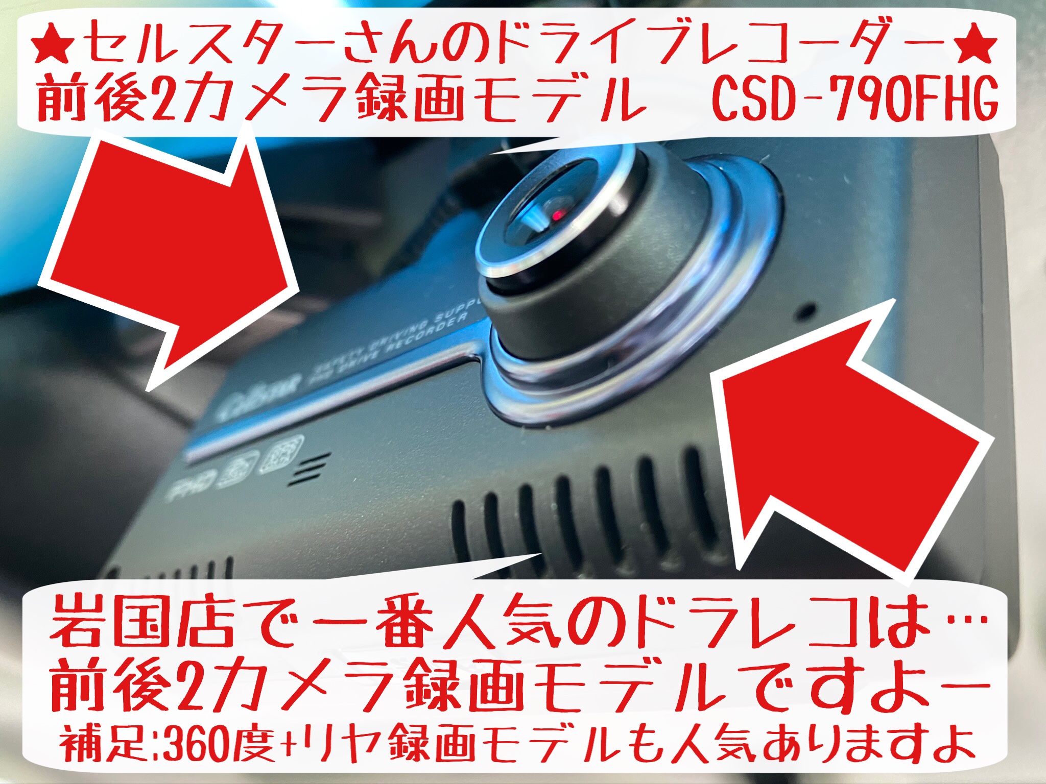当店おすすめのセルスターさんのドライブレコーダー…ドラレコですよ。岩国店スタッフもこのモデルを使用中です…私もセルスターさんの別モデル使用中!