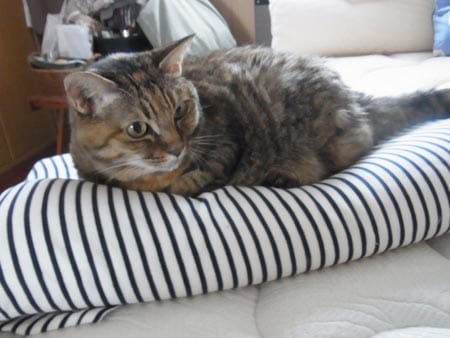 本日、掃除していたらついにテンピュール枕の上に!!!