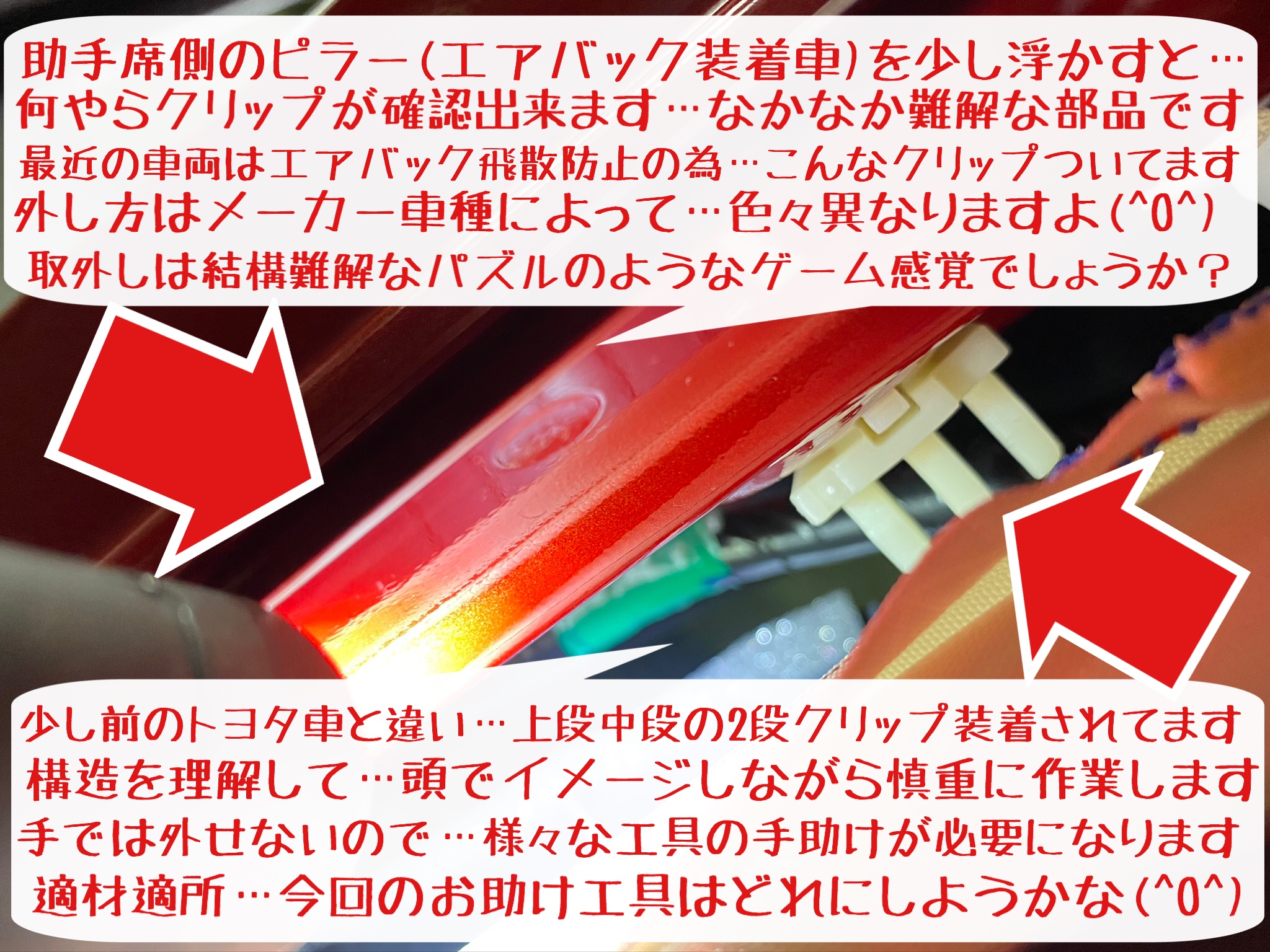 本日は… ドライブレコーダー ドラレコ 装着の難関の一つである …フロントピラー取外し(バラし)ですよ!