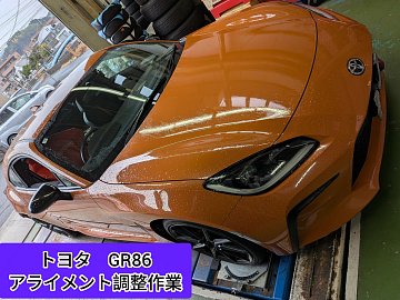 タイヤ館岩国で、トヨタ GR86のアライメント測定調整作業をさせていただきました。