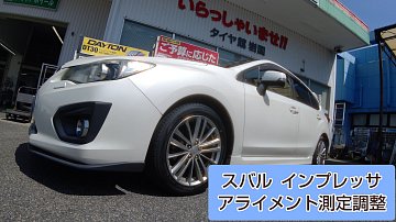 タイヤ館岩国で、スバル インプレッサスポーツのアライメント測定調整作業をさせていただきました。