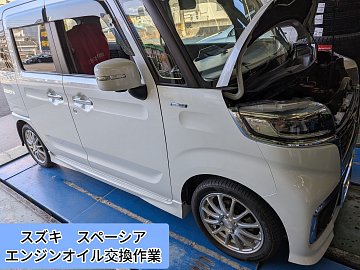 タイヤ館岩国で、スズキ スペーシアのエンジンオイル交換作業をさせていただきました。