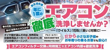 花粉・ウイルス・臭いの対策に‼‼‼ 車内の空気の入り口をしっかり洗浄しませんか?? アルコールフリー、塩素系消毒剤不使用 天然由来成分で高い安全性だからこそ 小さいお子様やお年寄りの乗るお車でも安心★ 当店で使用するのは 世界的な自動車用品メーカー【WURTH】(ウルト)の プロ仕様クリーニン...