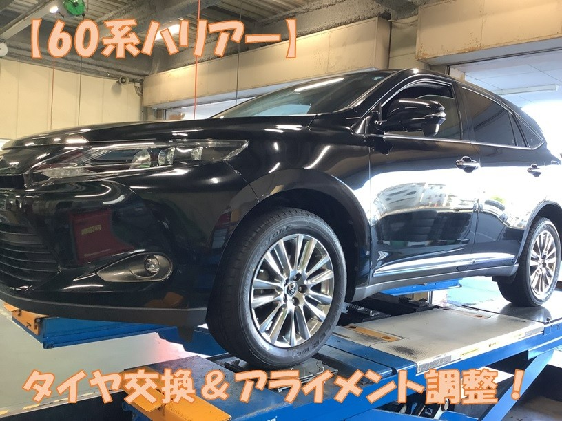 今回はTOYOTA【60系ハリアー】タイヤ交換&アライメント調整作業のご紹介です。