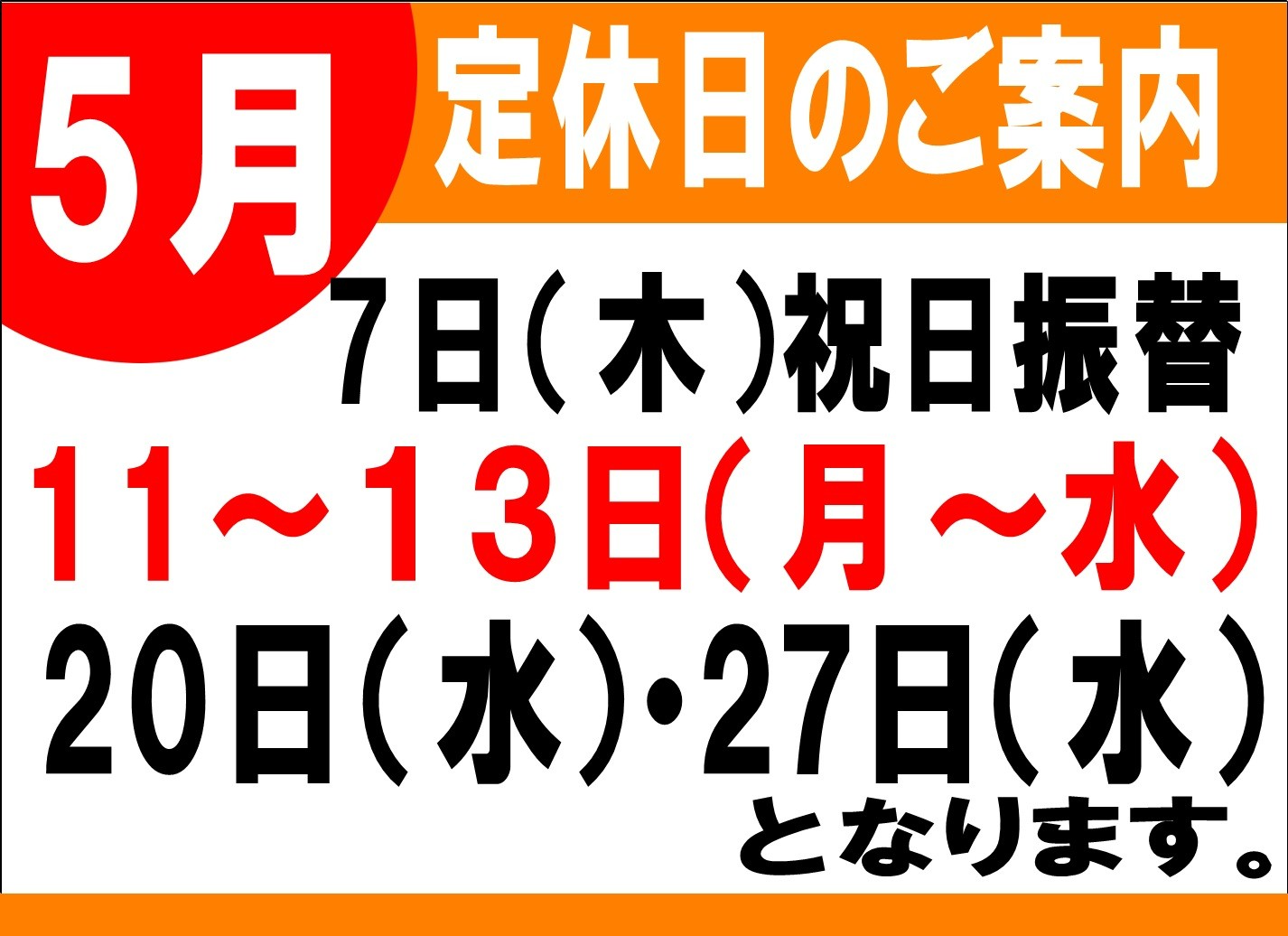 5月定休日となります。